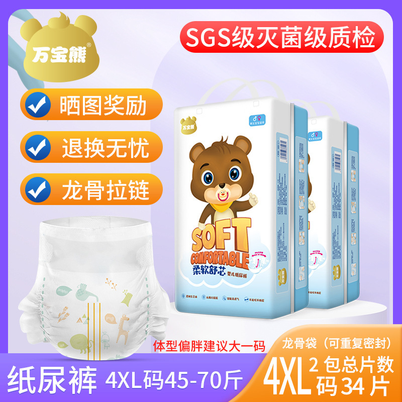 万宝熊婴儿纸尿裤轻薄透气婴儿童宝宝夜用大码4XL尿不湿XXXXL大号