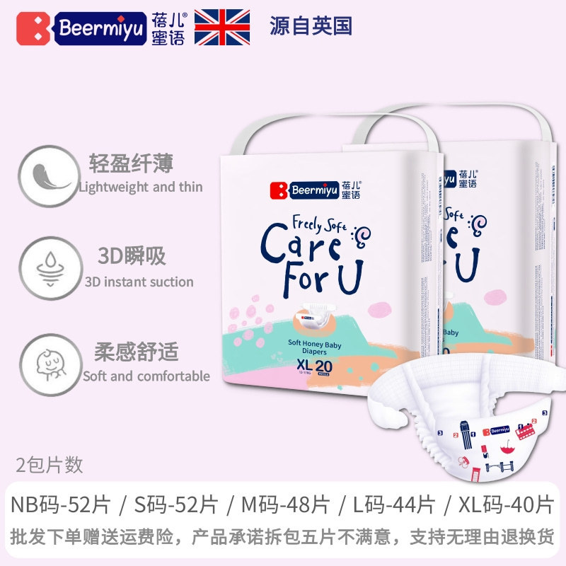 蓓儿蜜语Beermiyu纸尿裤新生婴儿超薄透气男女宝宝尿不湿NBSML码