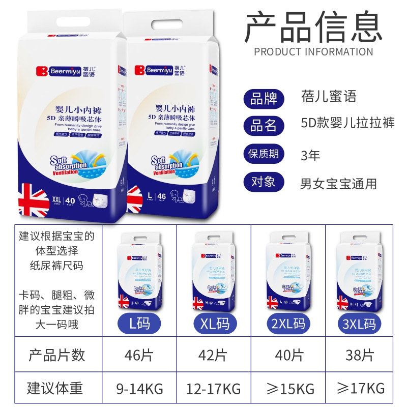 商品名称:蓓儿蜜语Beermiyu纸尿裤新生婴儿超薄透气男女宝宝尿不湿NBSML码