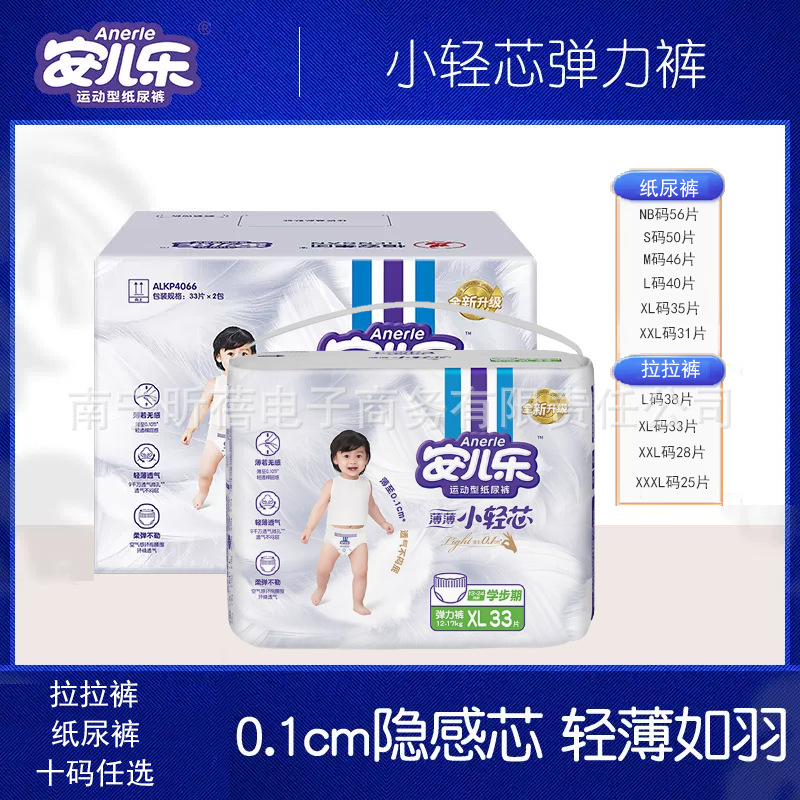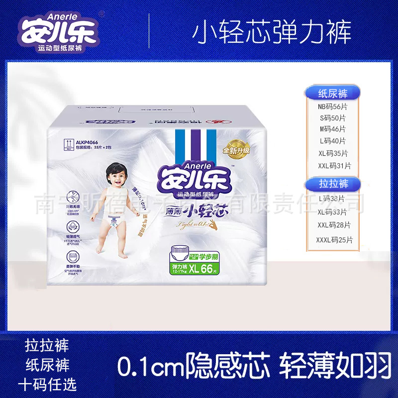 安儿乐小轻芯纸尿裤安儿乐拉拉裤超薄透气婴儿尿片尿不湿轻薄NB码