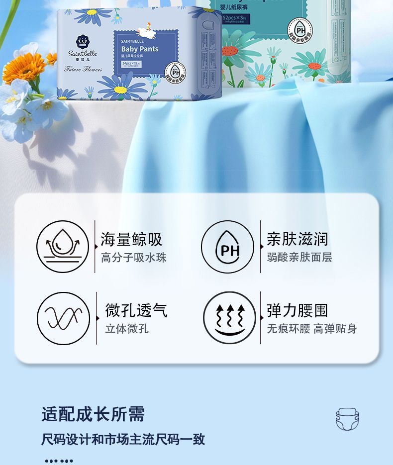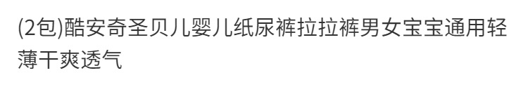 商品名称:(2包)酷安奇拉拉裤现货圣贝儿婴儿清仓纸尿裤男女宝宝轻薄透气批