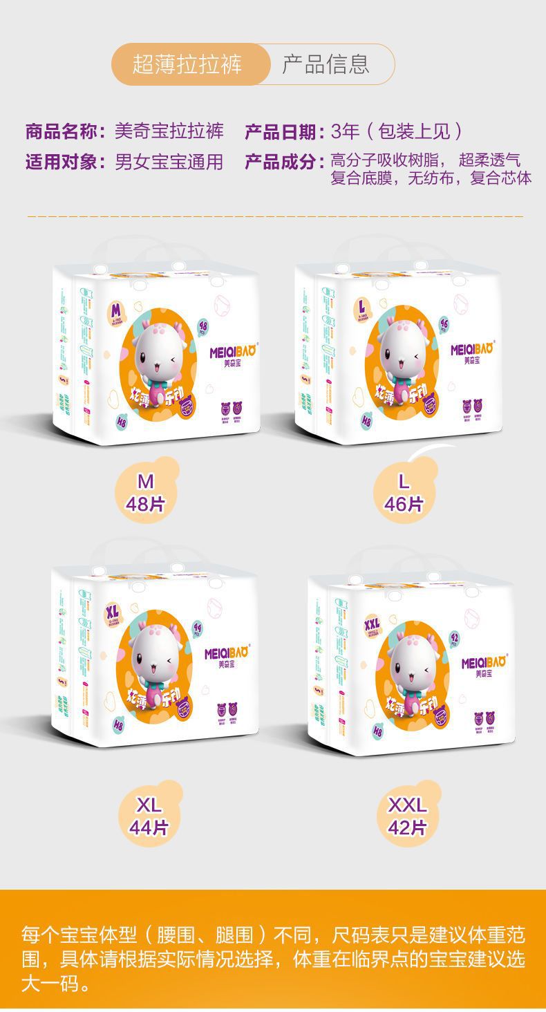 商品名称:美奇宝H8一体裤4XL宝宝婴儿超薄干爽纸尿裤XXL拉拉裤XXXL尿不湿