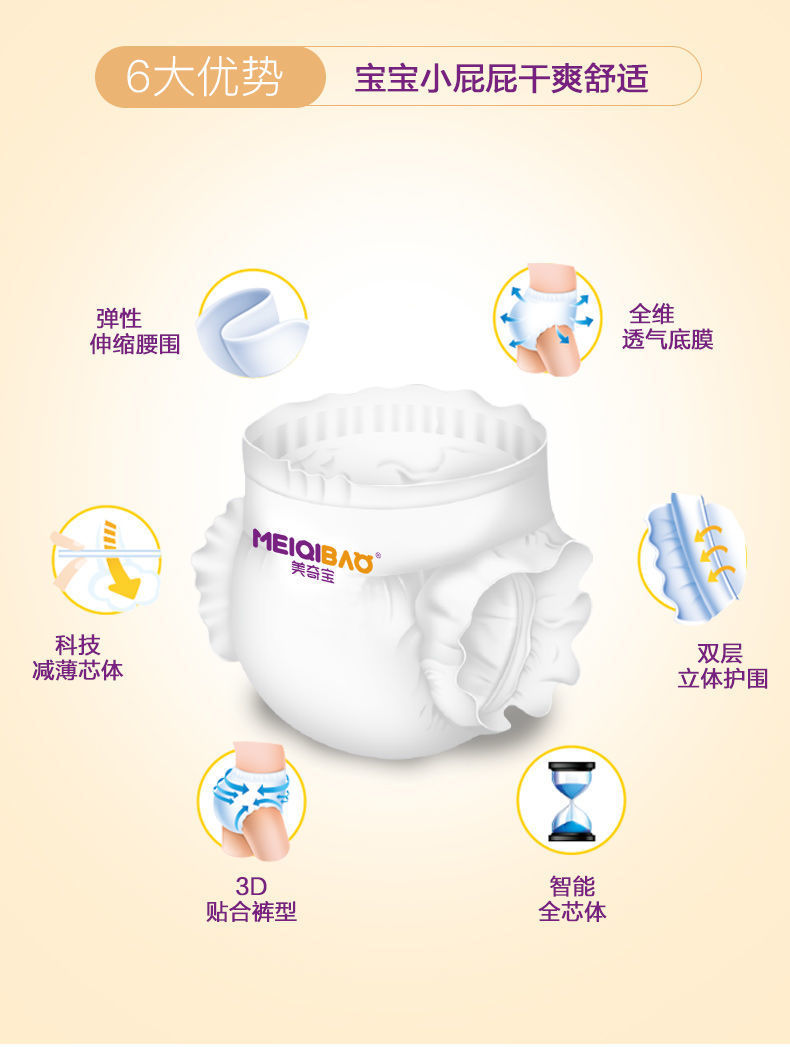 纸尿裤特质:透气,轻薄,棉柔,干爽
