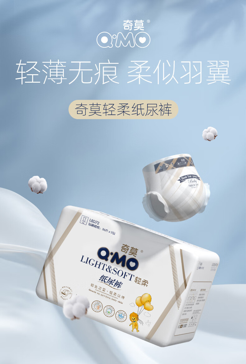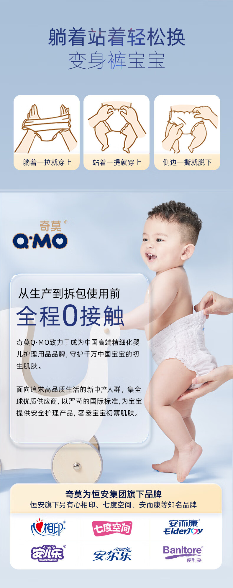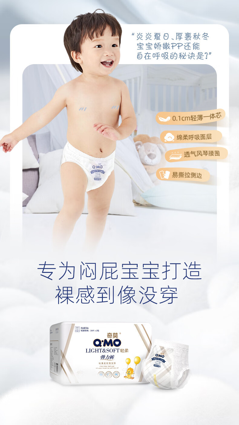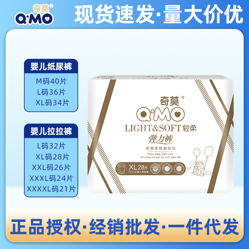 q·mo/奇莫婴儿拉拉裤纸尿裤男女宝宝超薄干爽透气尿不湿弹力裤