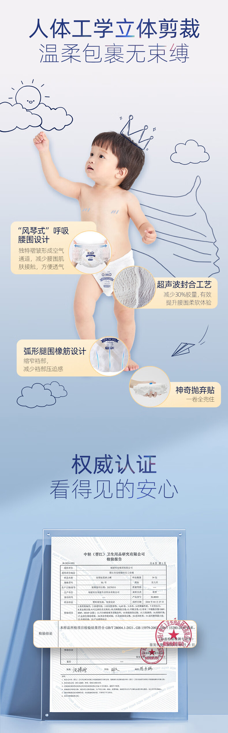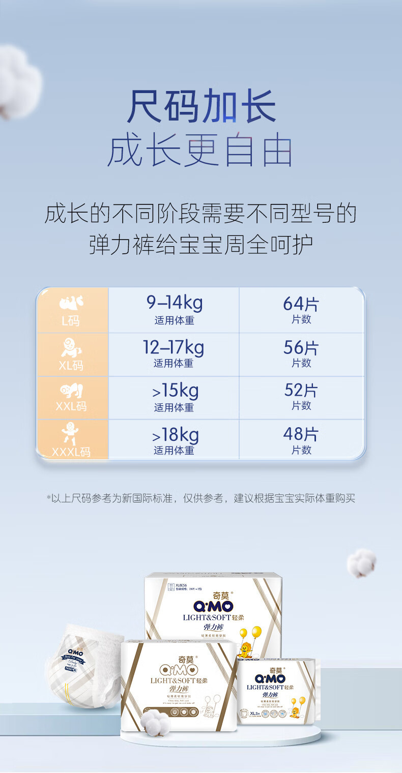 商品名称:q·mo/奇莫婴儿拉拉裤纸尿裤男女宝宝超薄干爽透气尿不湿弹力裤