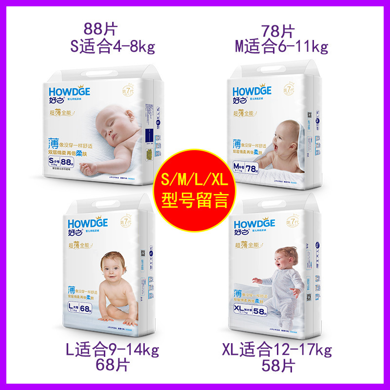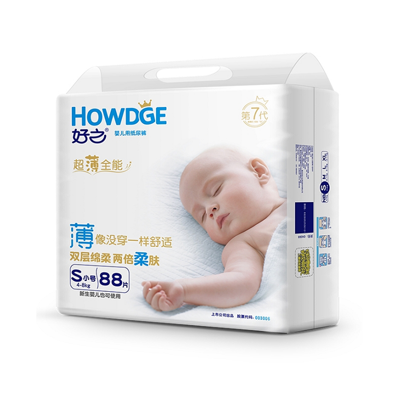 商品名称:新升级好之超薄全能婴儿纸尿裤S码干爽瞬吸透气男女宝宝88片4-8kg