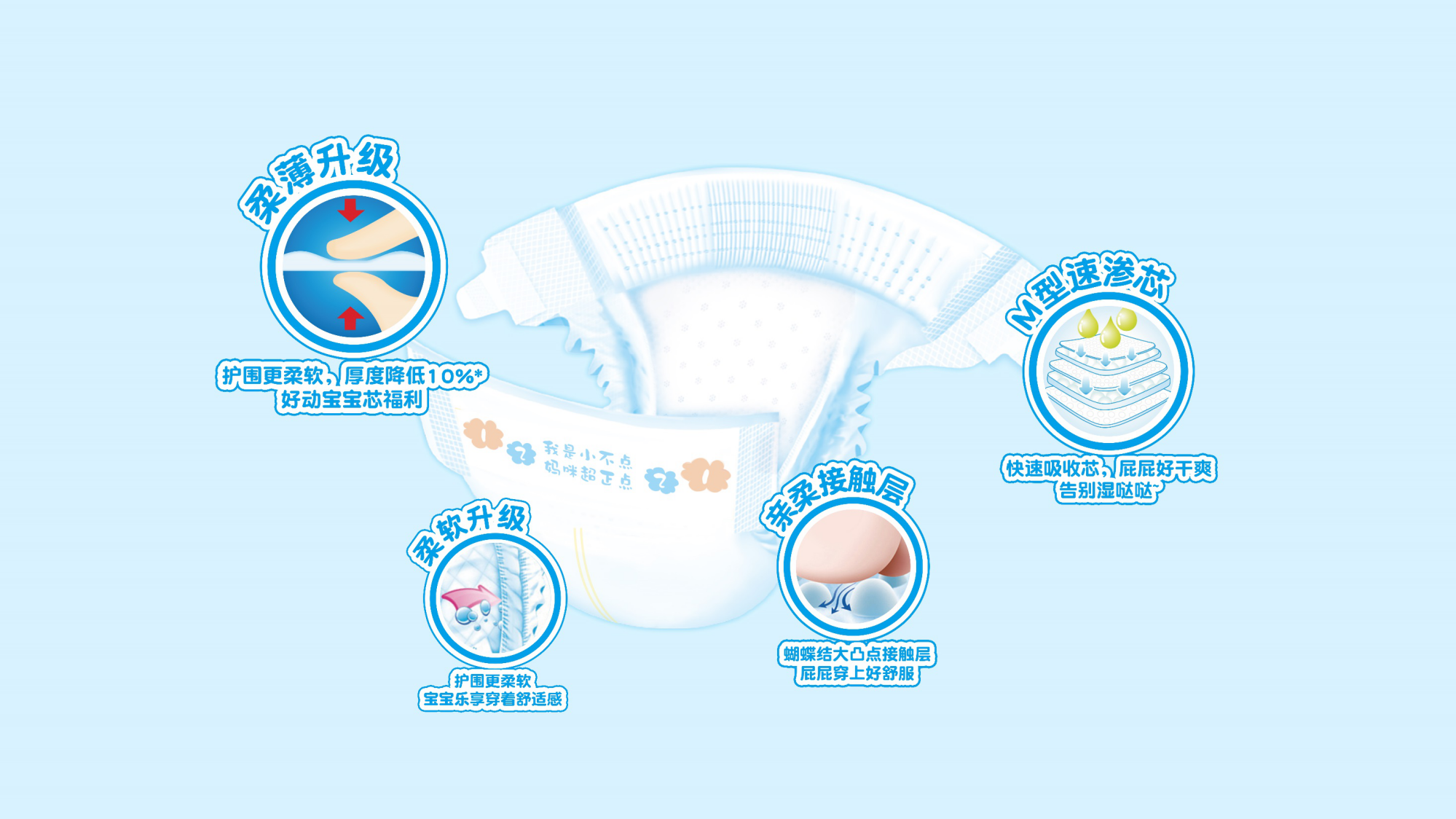 纸尿裤特质:透气,轻薄,干爽,超强吸水