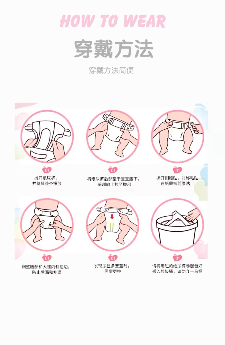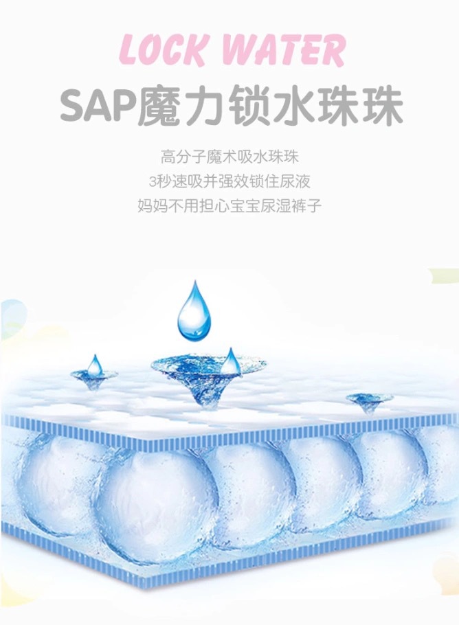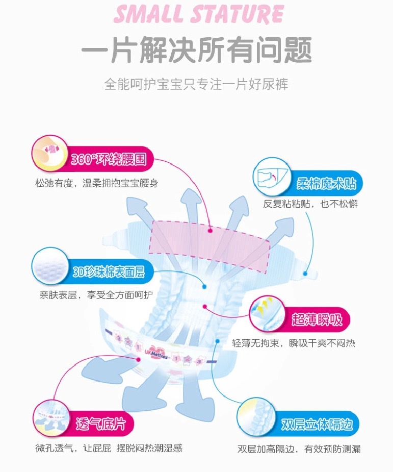 纸尿裤特质:透气,轻薄,棉柔,干爽,超强吸水