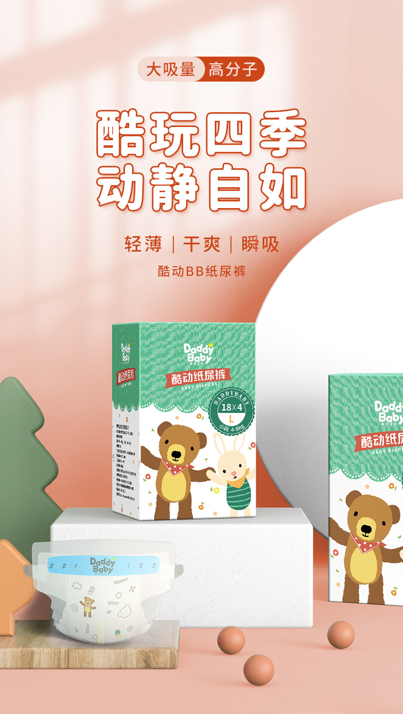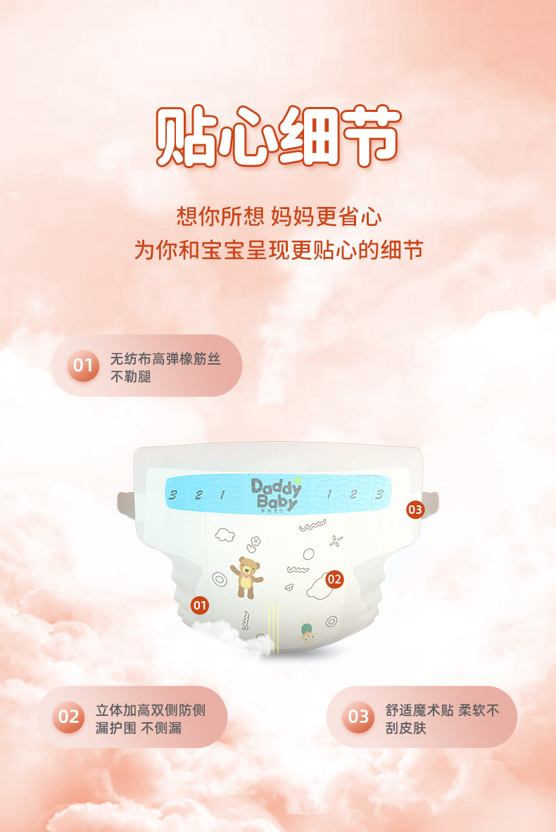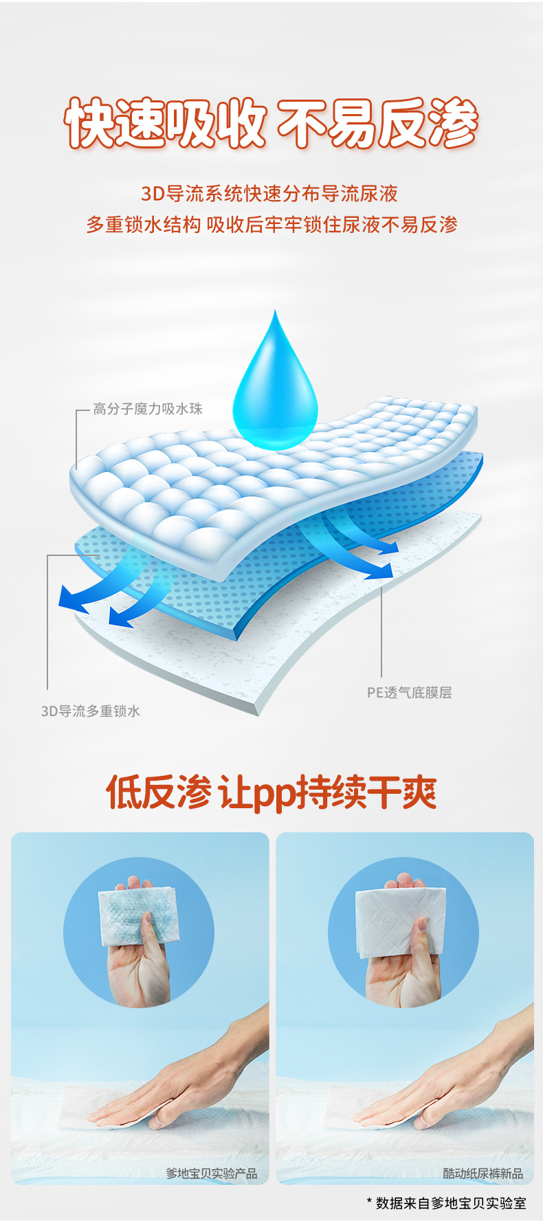 纸尿裤特质:透气,轻薄,干爽,超强吸水