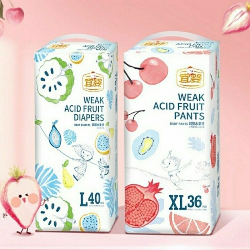 【新日期】宜婴弱酸水果裤宝宝纸尿裤拉拉裤婴儿尿不湿两包一箱