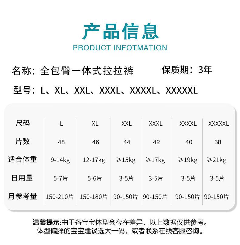 商品名称:一体式拉拉裤XXXXXL全包臀大码男宝宝女婴儿大童夜用纸尿裤尿不湿