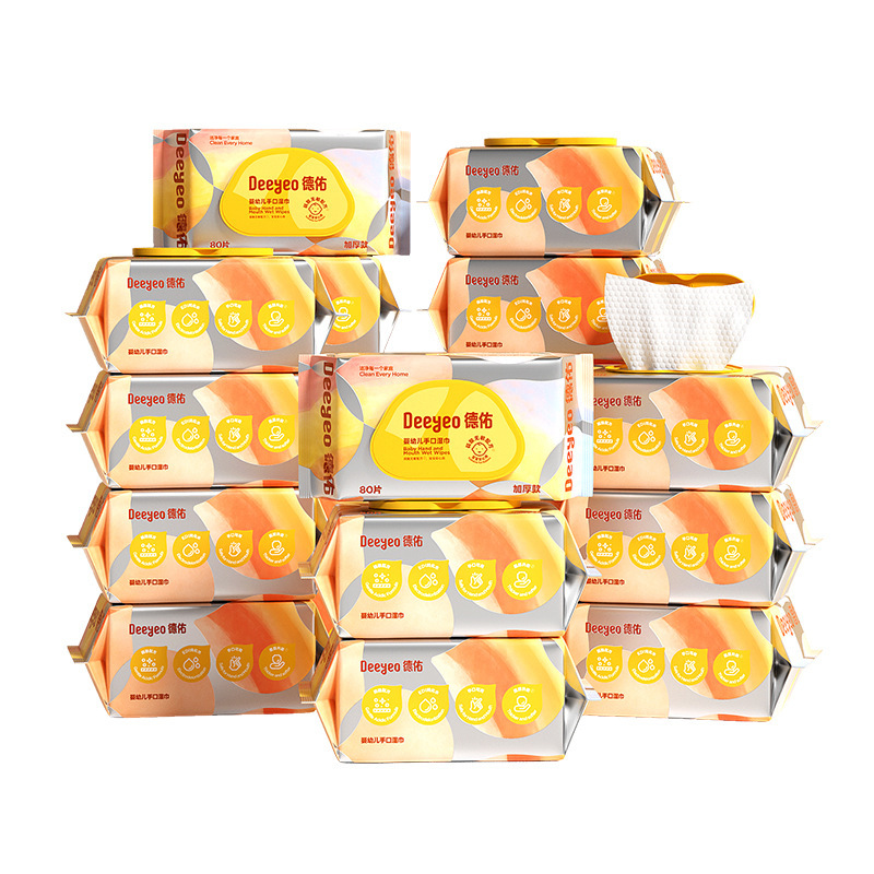 【严选】德佑湿巾婴儿手口湿巾80抽湿纸巾五包装婴儿湿巾