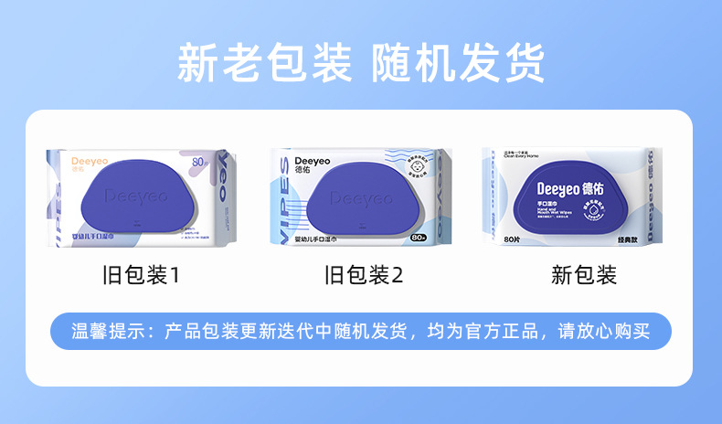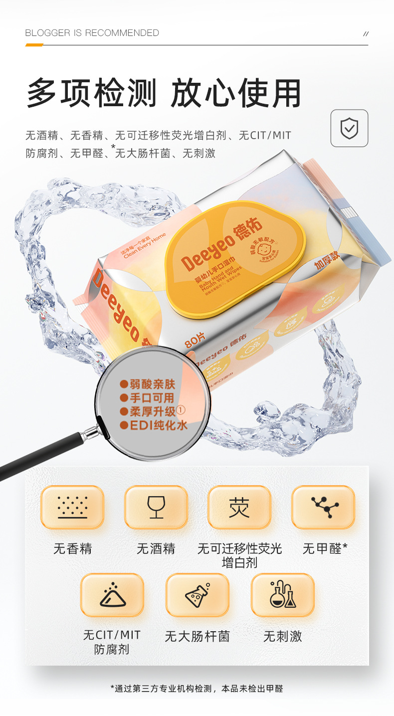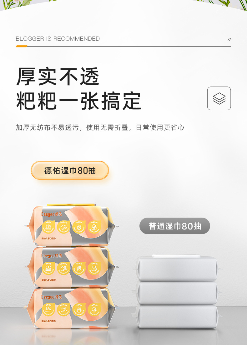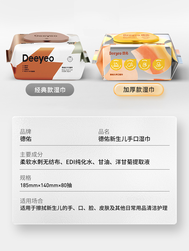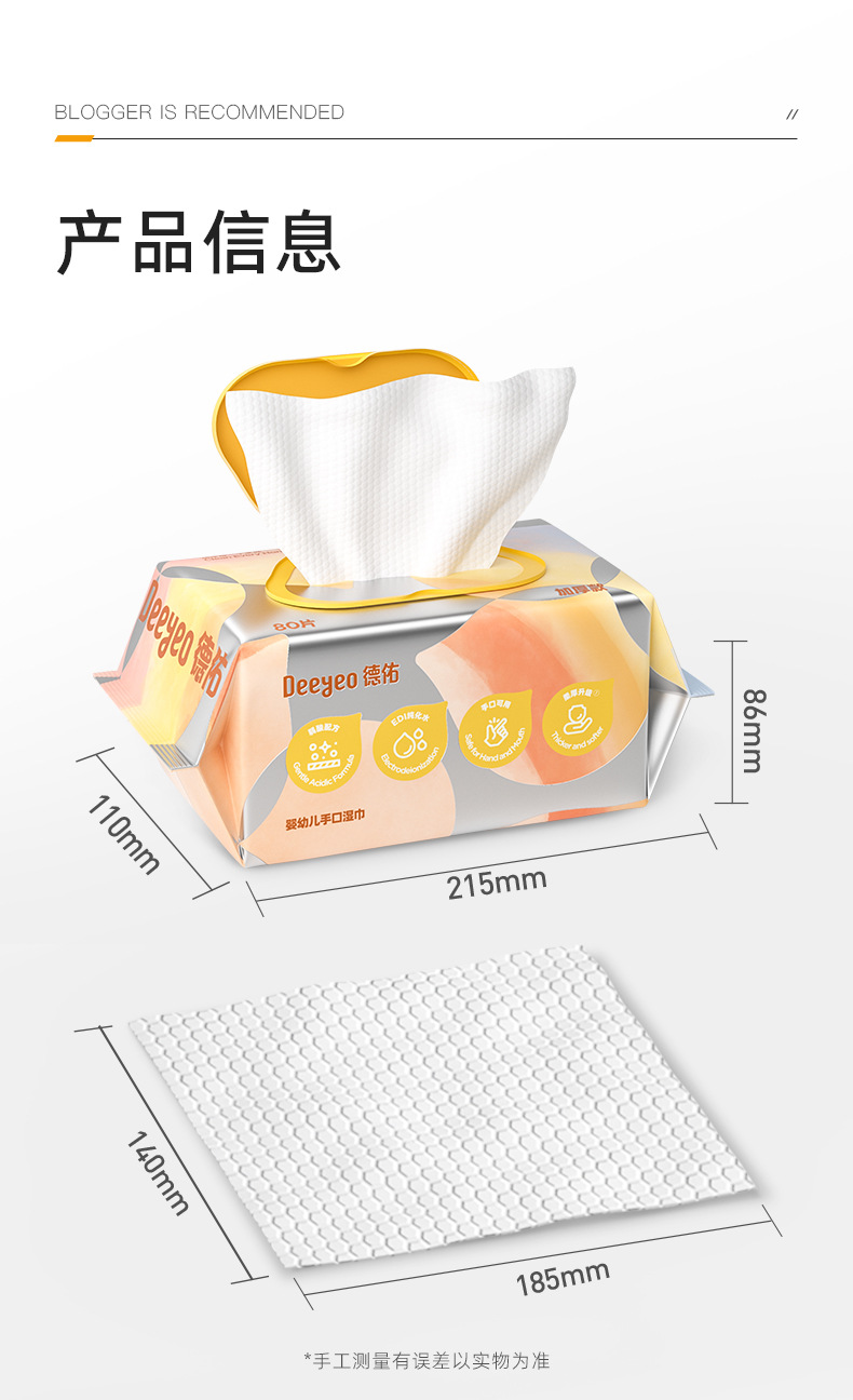 商品名称:【严选】德佑湿巾婴儿手口湿巾80抽湿纸巾五包装婴儿湿巾