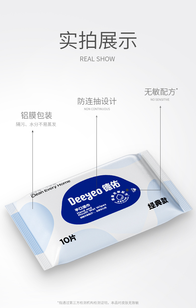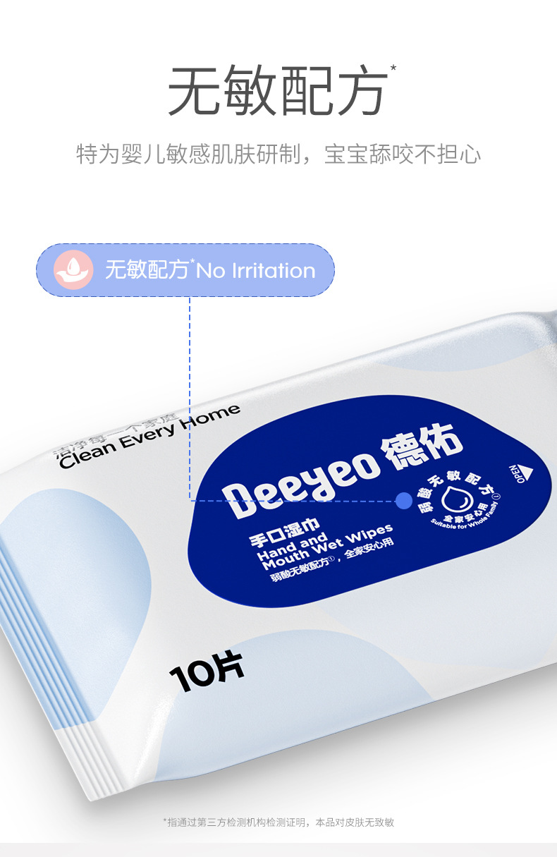 商品名称:德佑经典手口湿巾10抽便携湿巾随身装宝宝湿巾外出专用湿纸巾