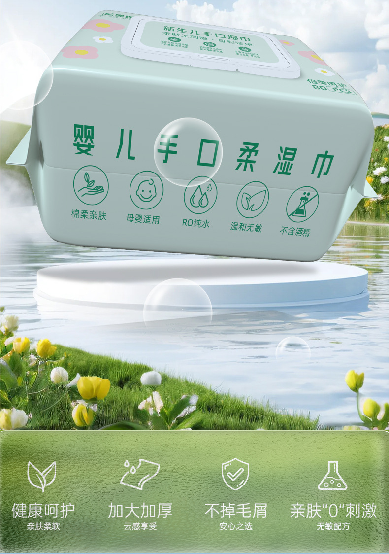 婴儿湿巾80抽大包婴幼儿手口湿纸巾母婴新生儿专用80片装加大加厚