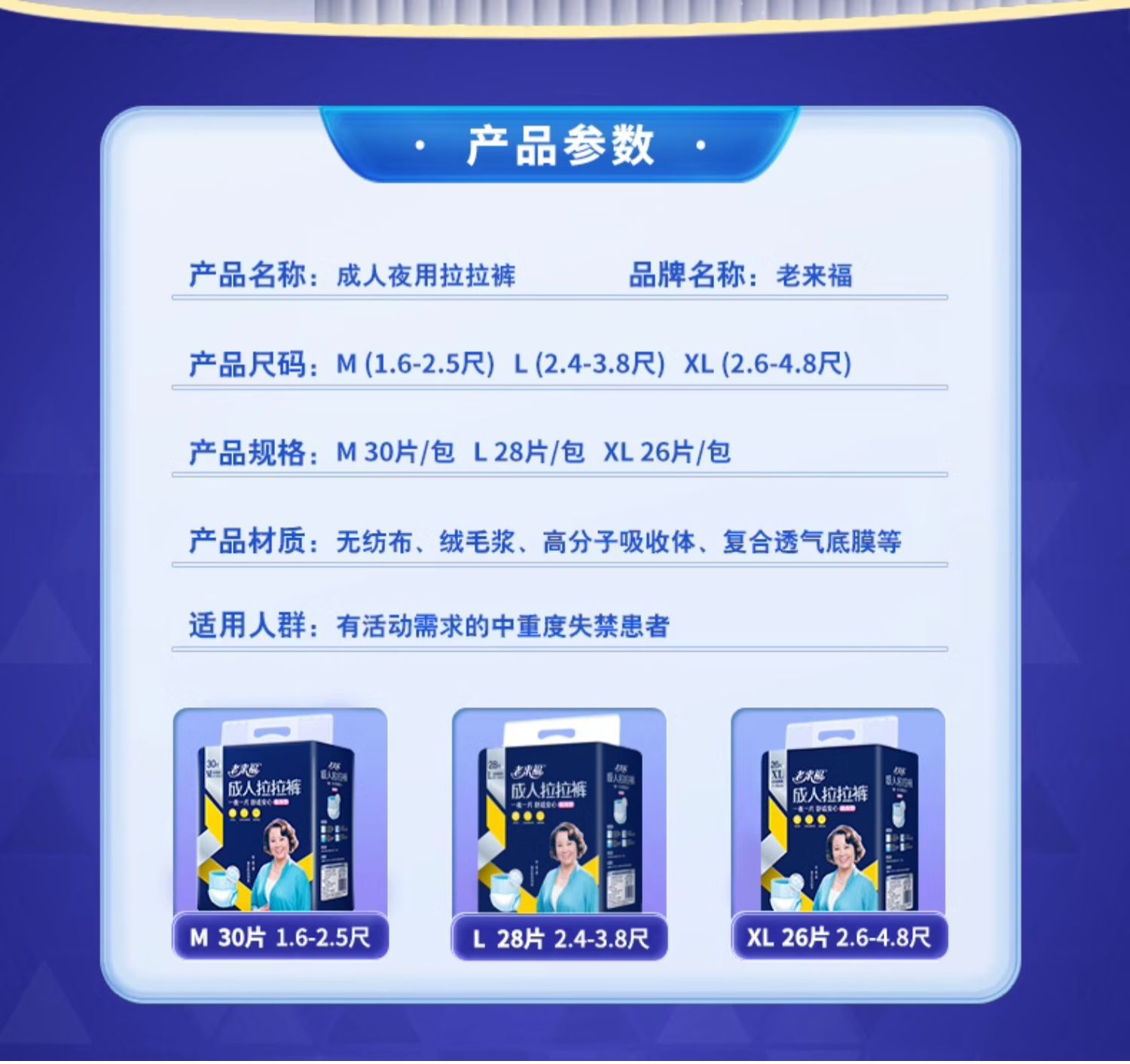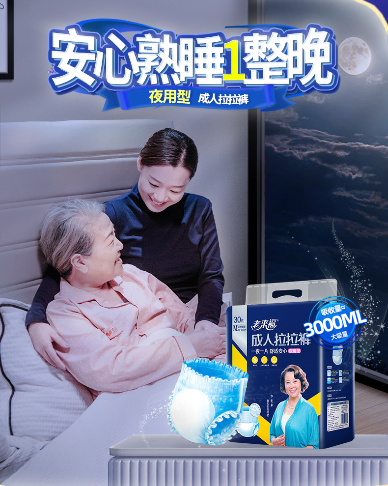 商品名称:老来福夜用型成人拉拉裤老人用尿不湿加厚老年人内裤式纸尿裤男女