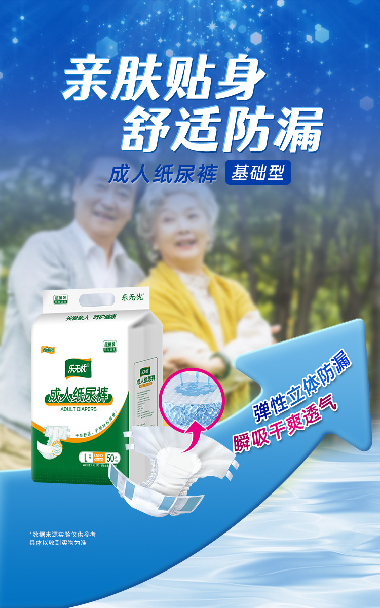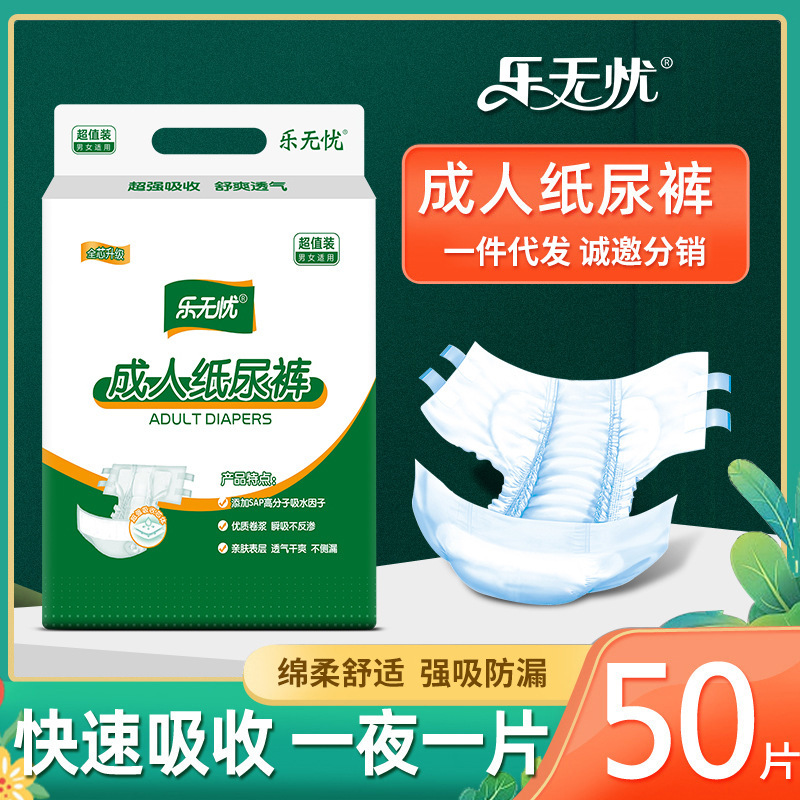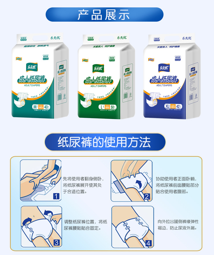 乐无忧量贩装成人纸尿裤老年人尿不湿腰贴型隔尿垫大吸量薄吸透爽