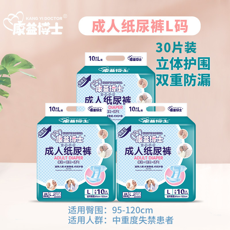 康益博士旗舰型成人纸尿裤 L码 一组3包(每包10片)