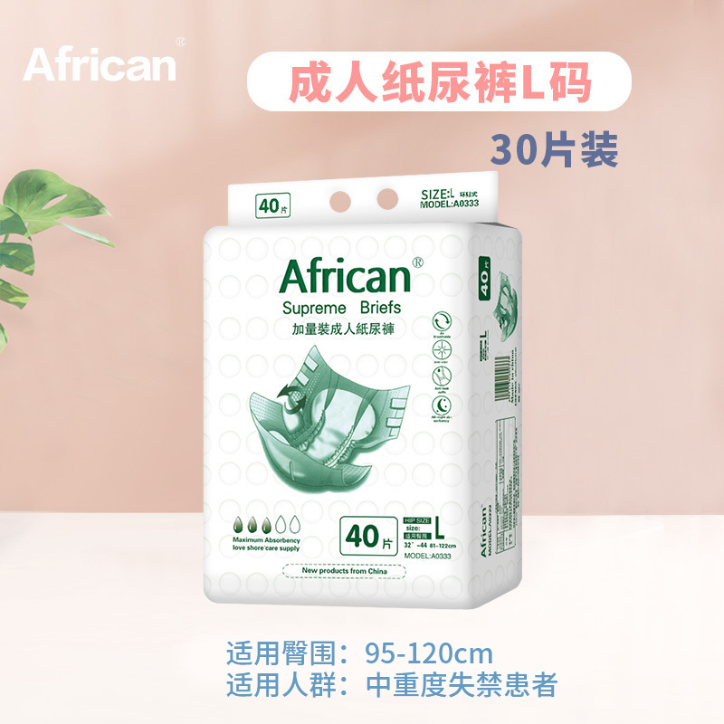 African粘贴式粘贴式成人纸尿裤40片装L码