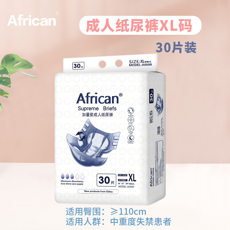 African粘贴式粘贴式成人纸尿裤30片装XL码
