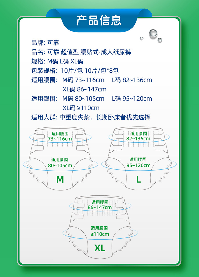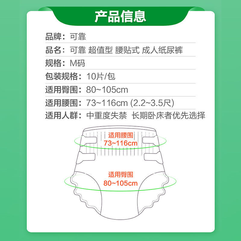 商品名称:可靠超值型成人纸尿裤老年人大号L/XL尿不湿男女通用尿裤加大加厚