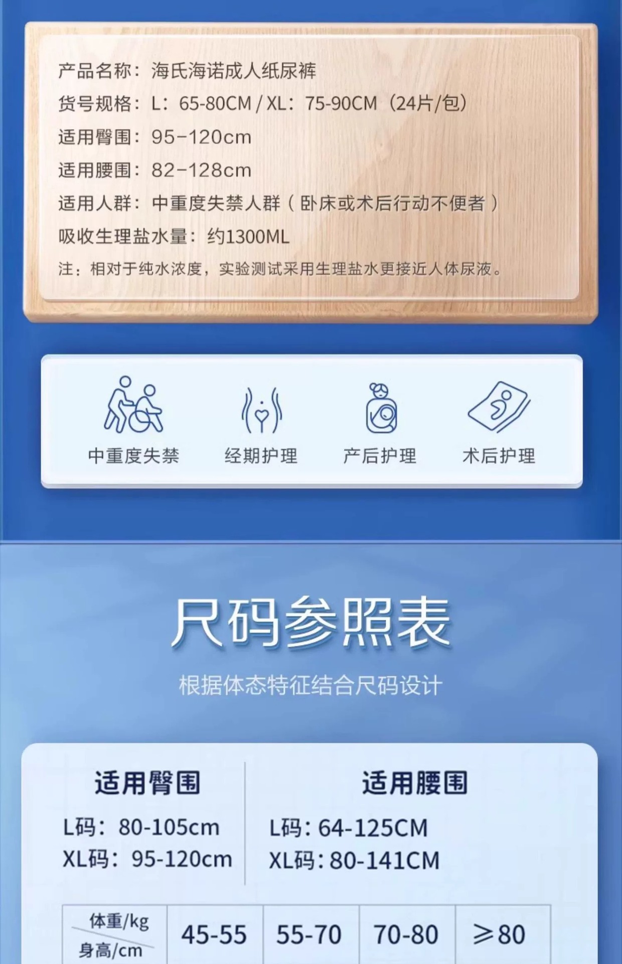 商品名称:艾享海氏海诺联名款成人纸尿裤大码加厚拉拉裤老年人产妇护理垫