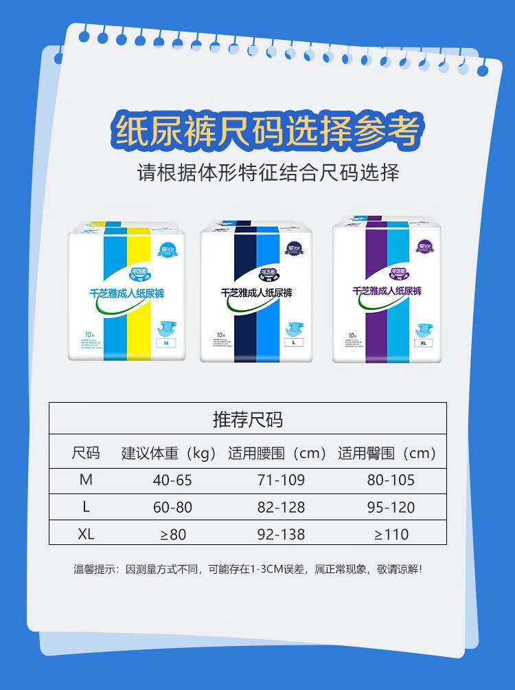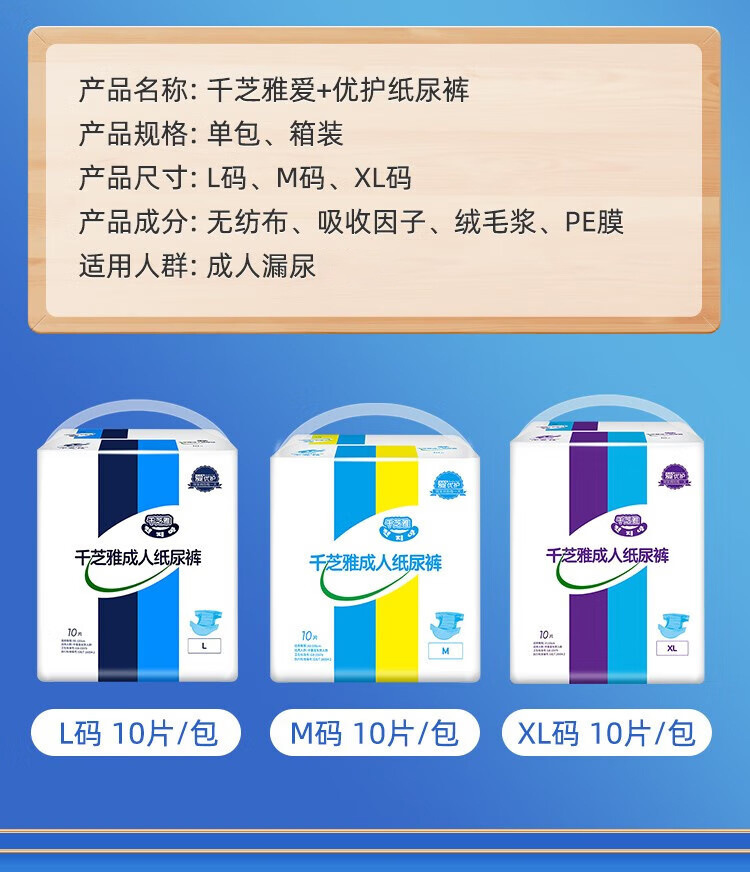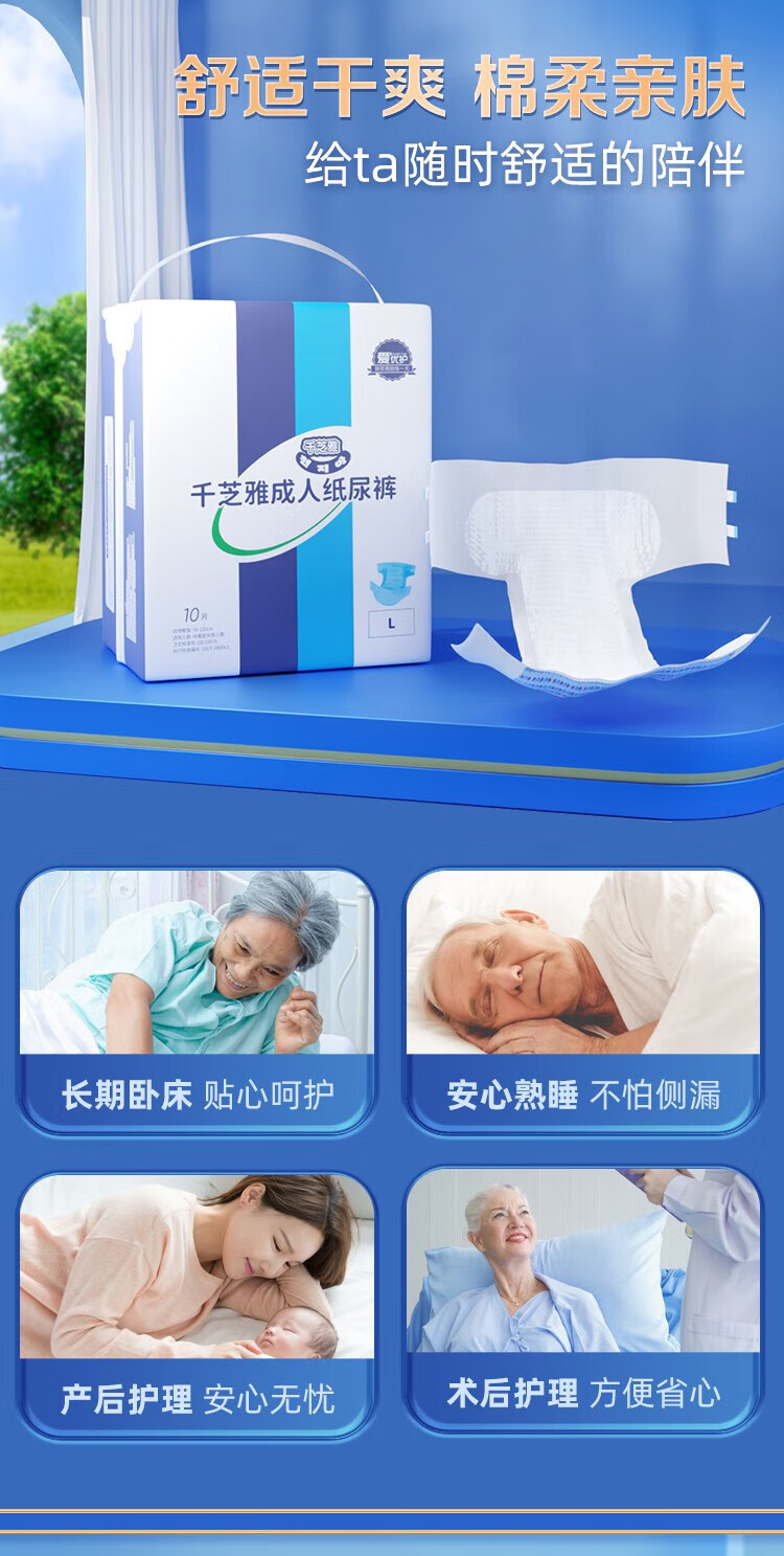 商品名称:千芝雅成人纸尿裤L大号10片 男女老年人老人专用尿不湿孕产妇尿布