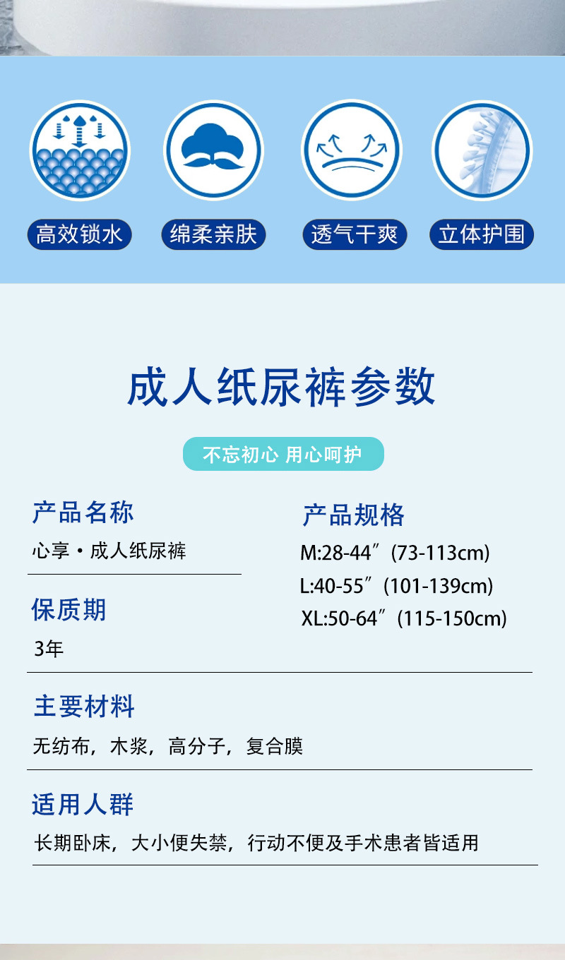 商品名称:心享成人纸尿裤尿不湿老人专用大吸量男女非拉拉裤大号