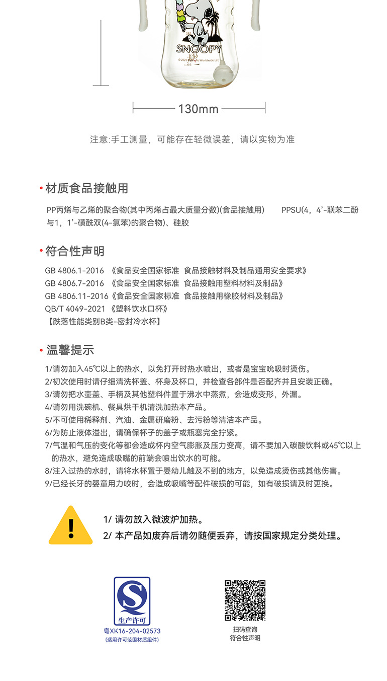 商品名称:Snoopy史努比 学饮杯婴儿6个月宝宝喝水杯吸管杯奶瓶饮水杯子防呛