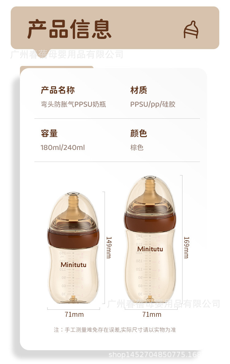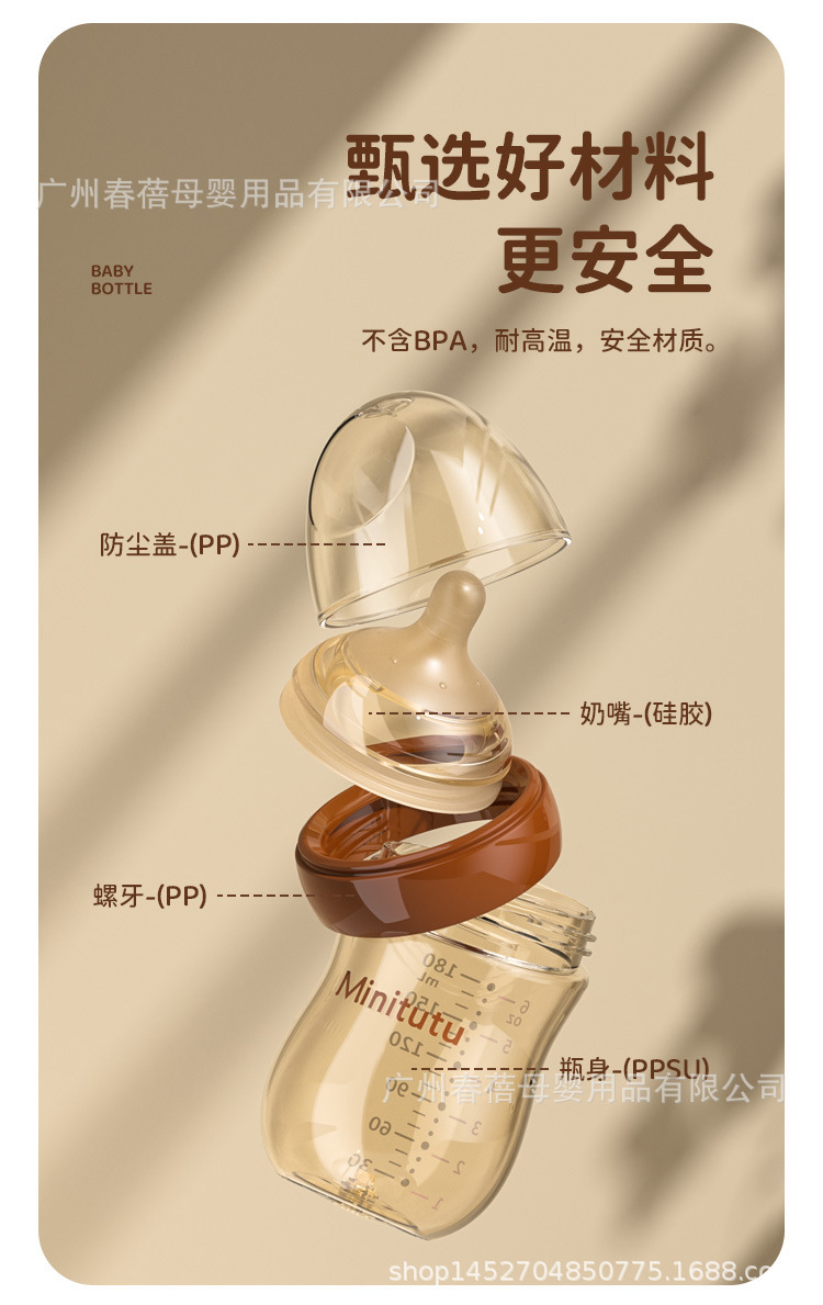 商品名称:Minitutu新生儿防胀气奶瓶0—12个月宝宝可用PPSU材质奶高温防摔