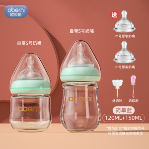 0-6个月玻璃奶瓶120/150ML,2个容量原装装好的奶嘴都是"S码"奶嘴(是不变的),