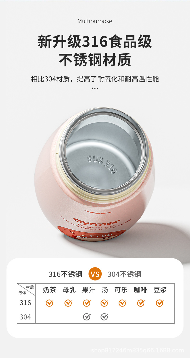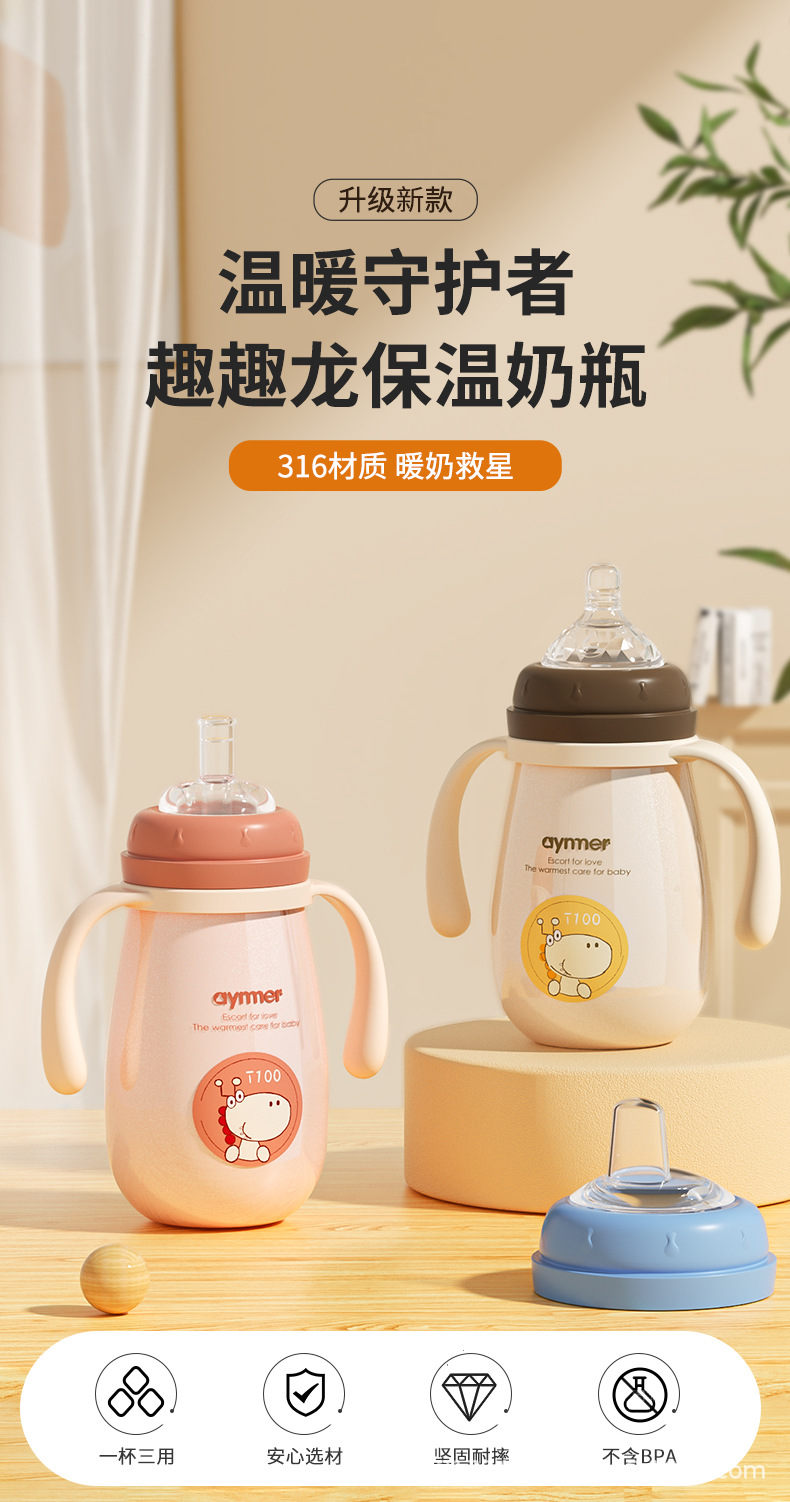 商品名称:316不锈钢保温奶瓶带柄儿童宝宝吸管水杯婴儿防呛恒温保温学饮杯