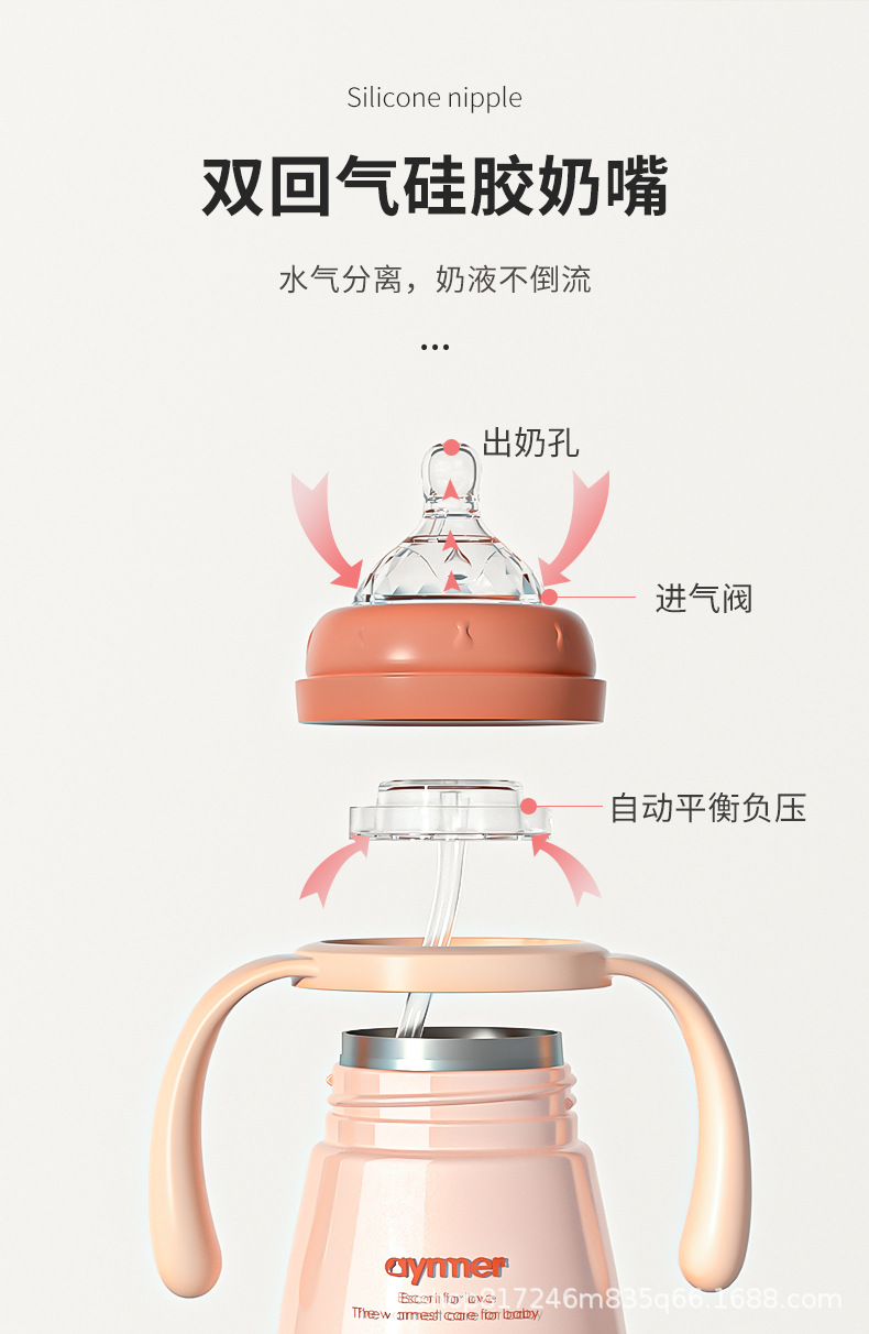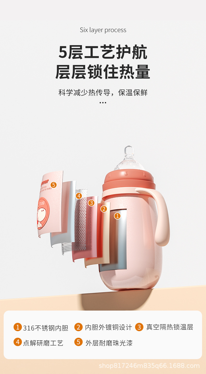 316不锈钢保温奶瓶带柄儿童宝宝吸管水杯婴儿防呛恒温保温学饮杯
