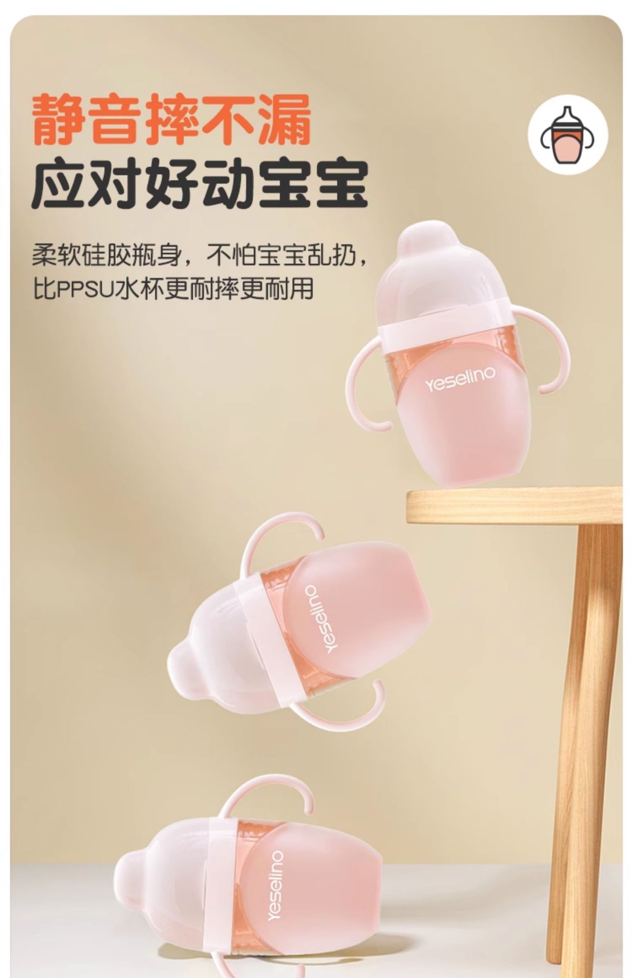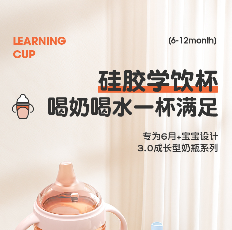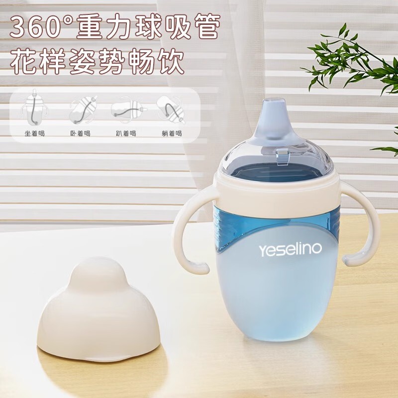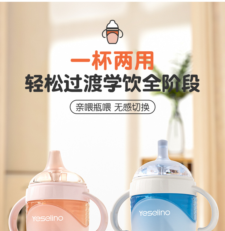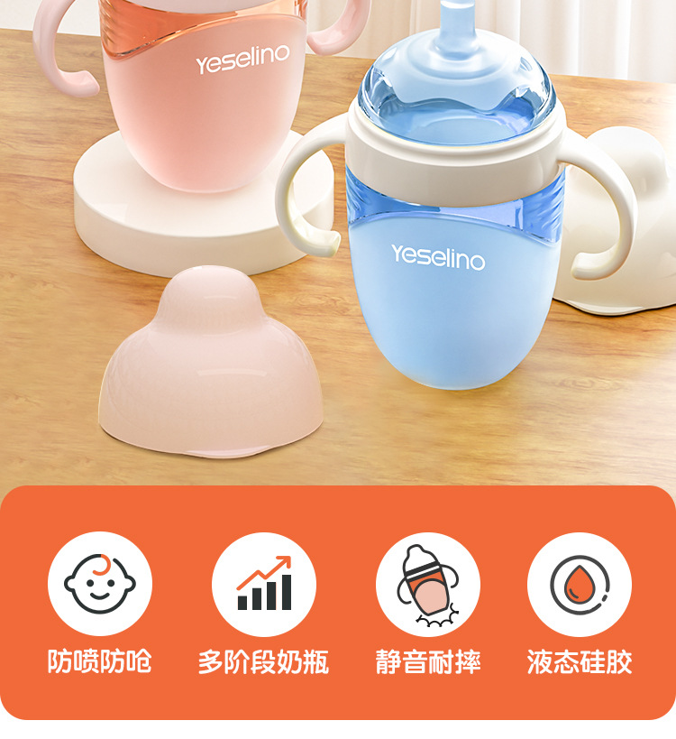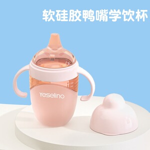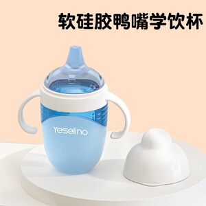 硅胶奶瓶鸭嘴杯吸管杯防摔防漏大宝宝奶瓶一岁以上学饮杯带手柄