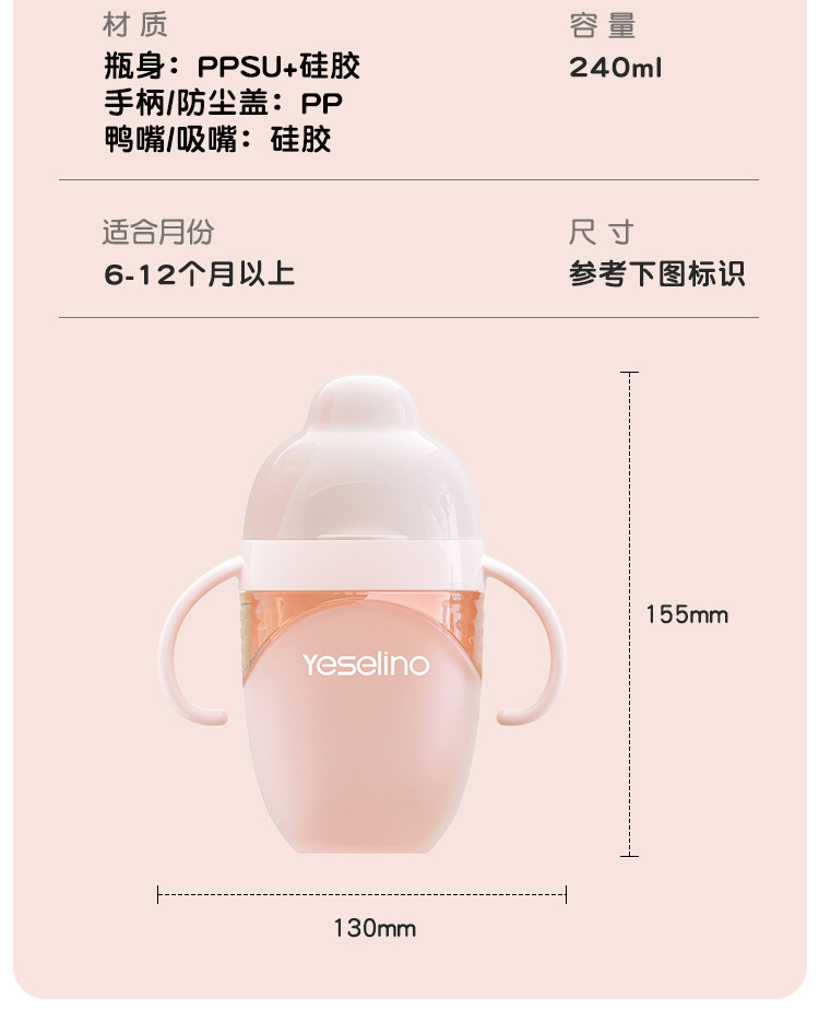 商品名称:硅胶奶瓶鸭嘴杯吸管杯防摔防漏大宝宝奶瓶一岁以上学饮杯带手柄