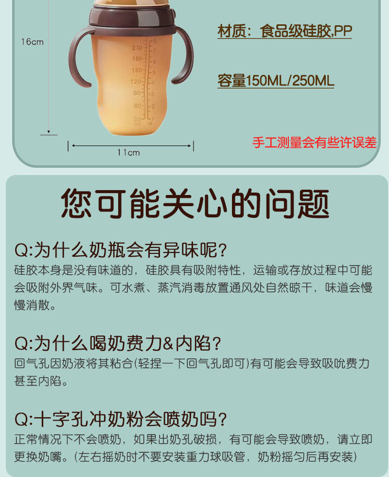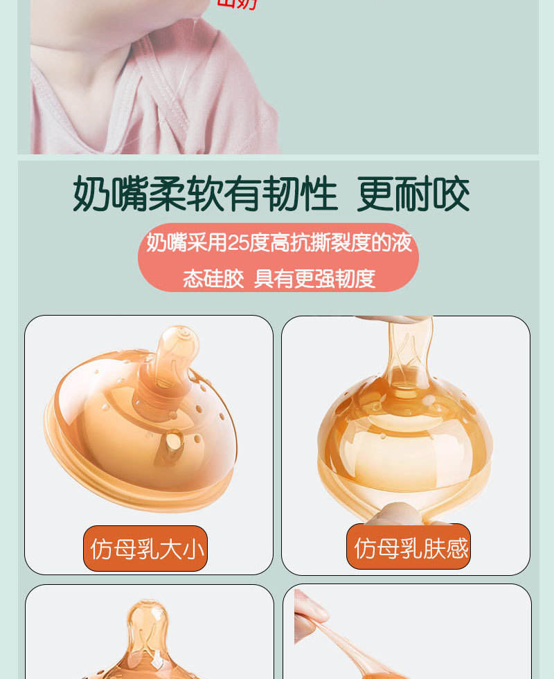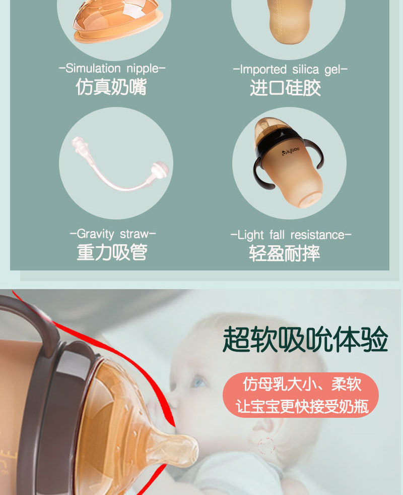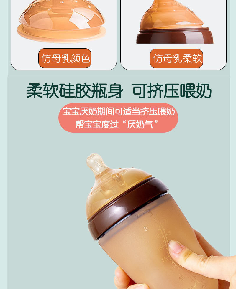商品名称:婴儿硅胶奶瓶超软防摔防胀气仿母乳0-1-2岁3ppsu戒奶断奶厂