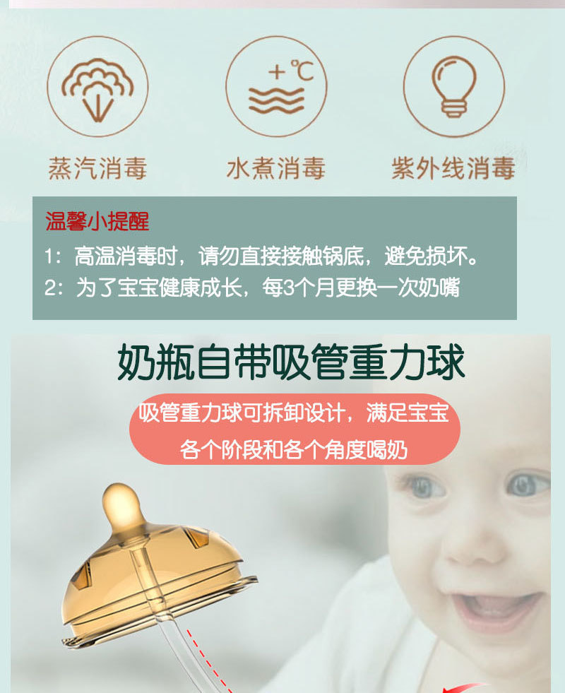 奶瓶+【送圆孔无吸管 新生儿专用】