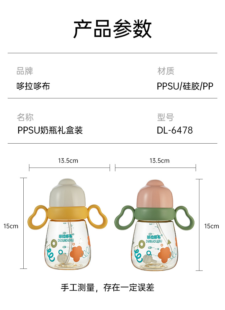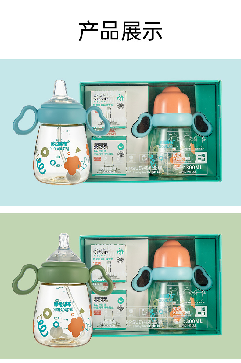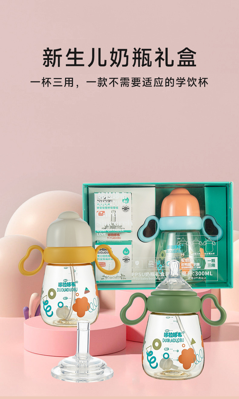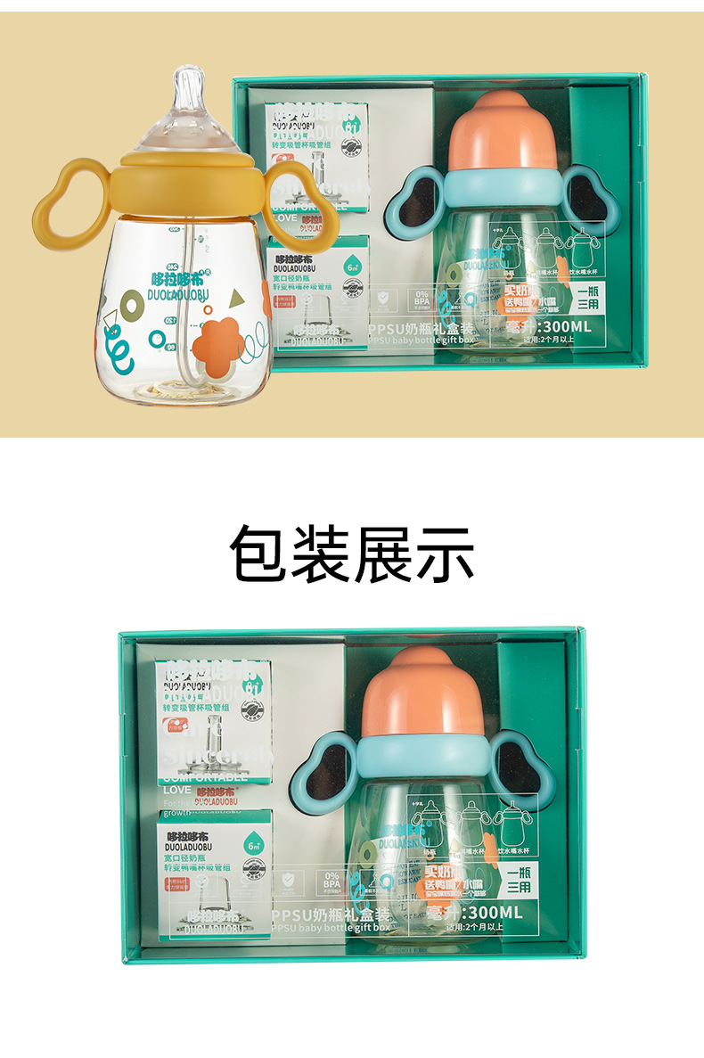 商品名称:哆拉哆布婴儿奶瓶鸭嘴学饮杯一瓶三用礼盒装奶瓶水杯喂养套装6478