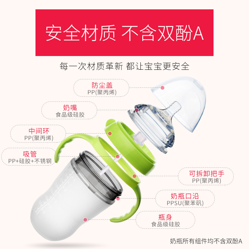 【产品名称】:硅胶奶瓶