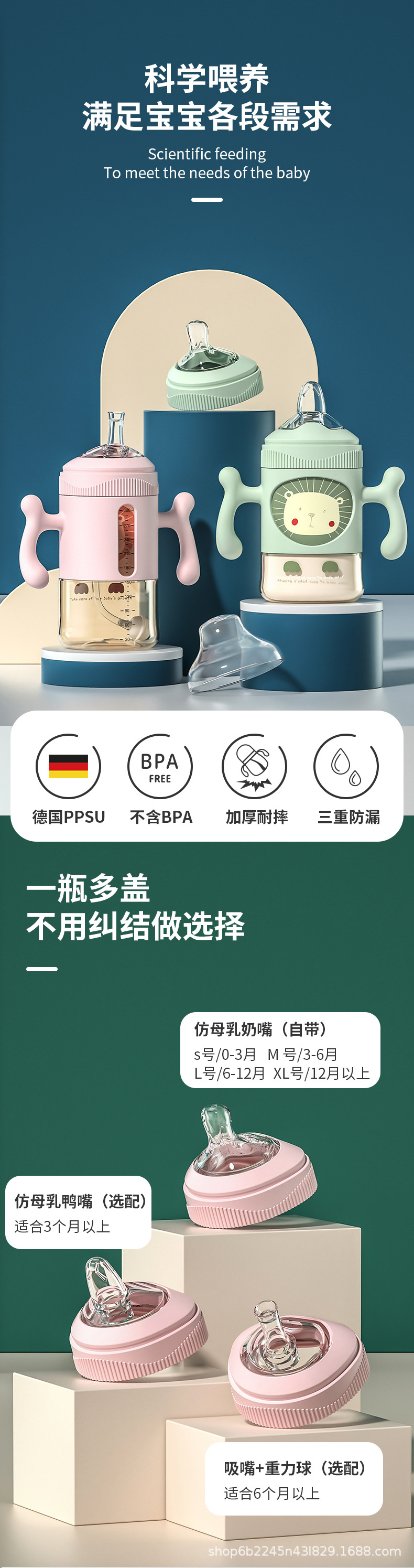 商品名称:三角奶瓶新生婴儿0-6个月以上初生吸管式防胀气耐摔鸭嘴喝水PPSU