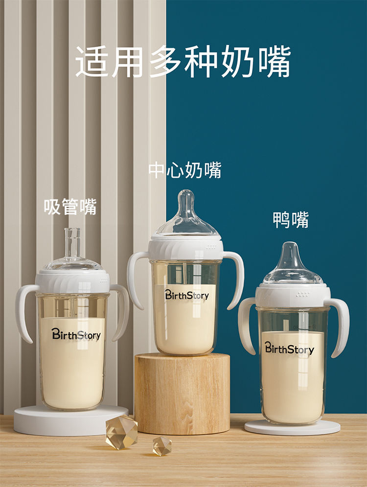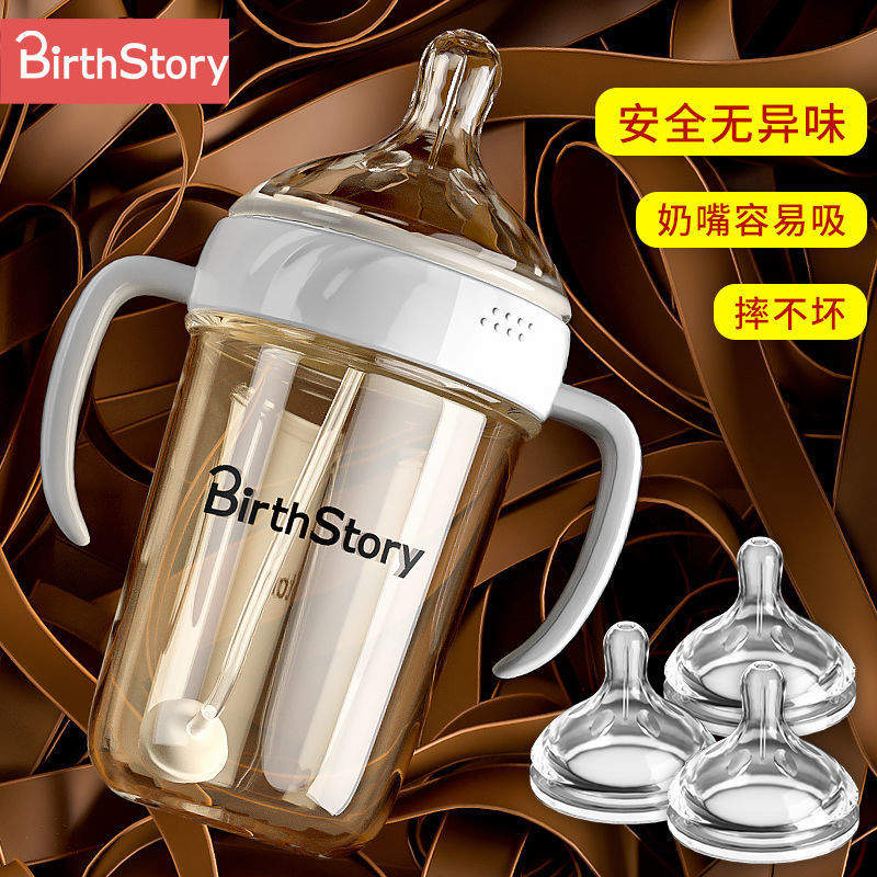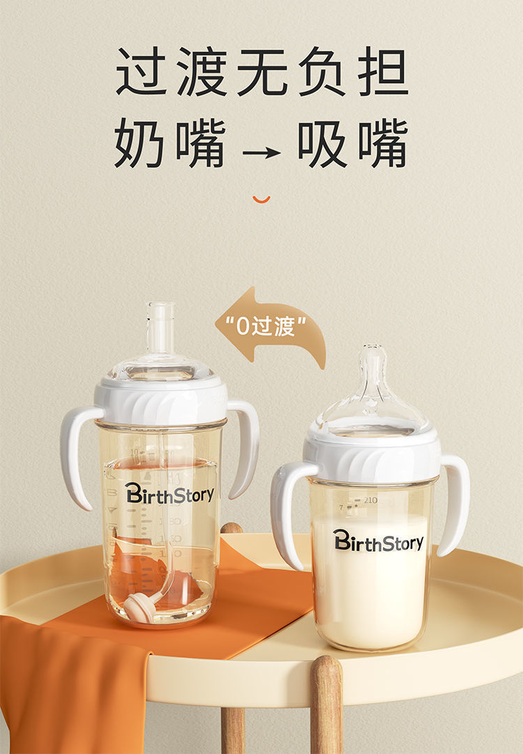 婴儿奶瓶PPSU耐摔宽口径防胀气大容量鸭嘴儿宝宝吸管杯喝水杯