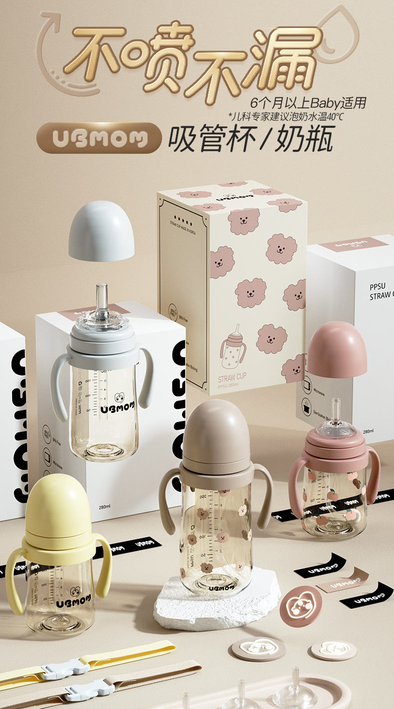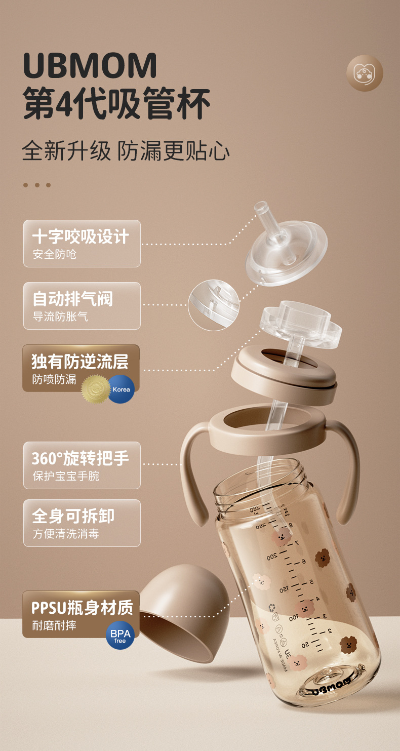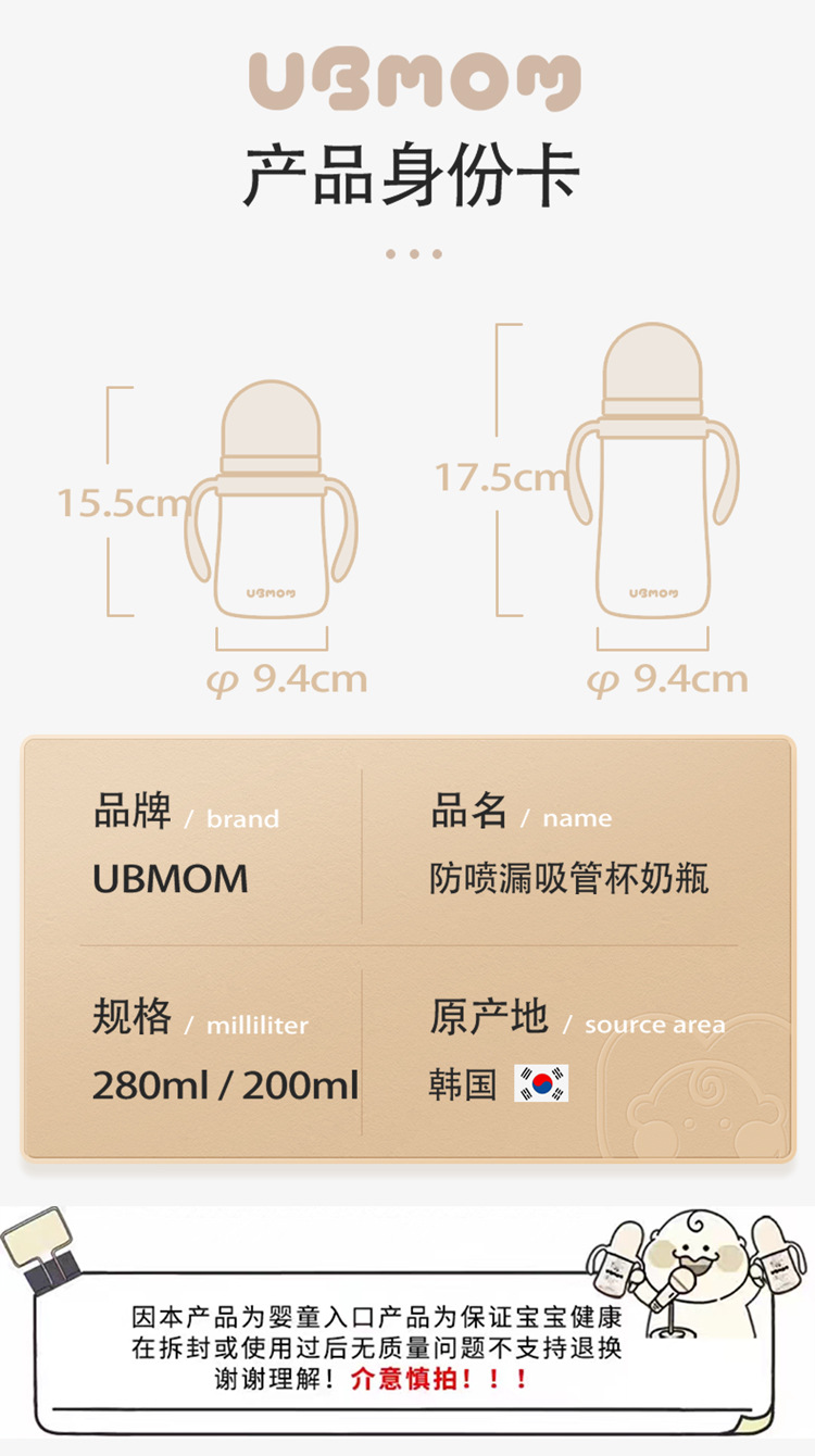 商品名称:ubmom吸管杯婴儿奶瓶宝宝防胀气防呛水杯儿童鸭嘴学饮杯6个月以上