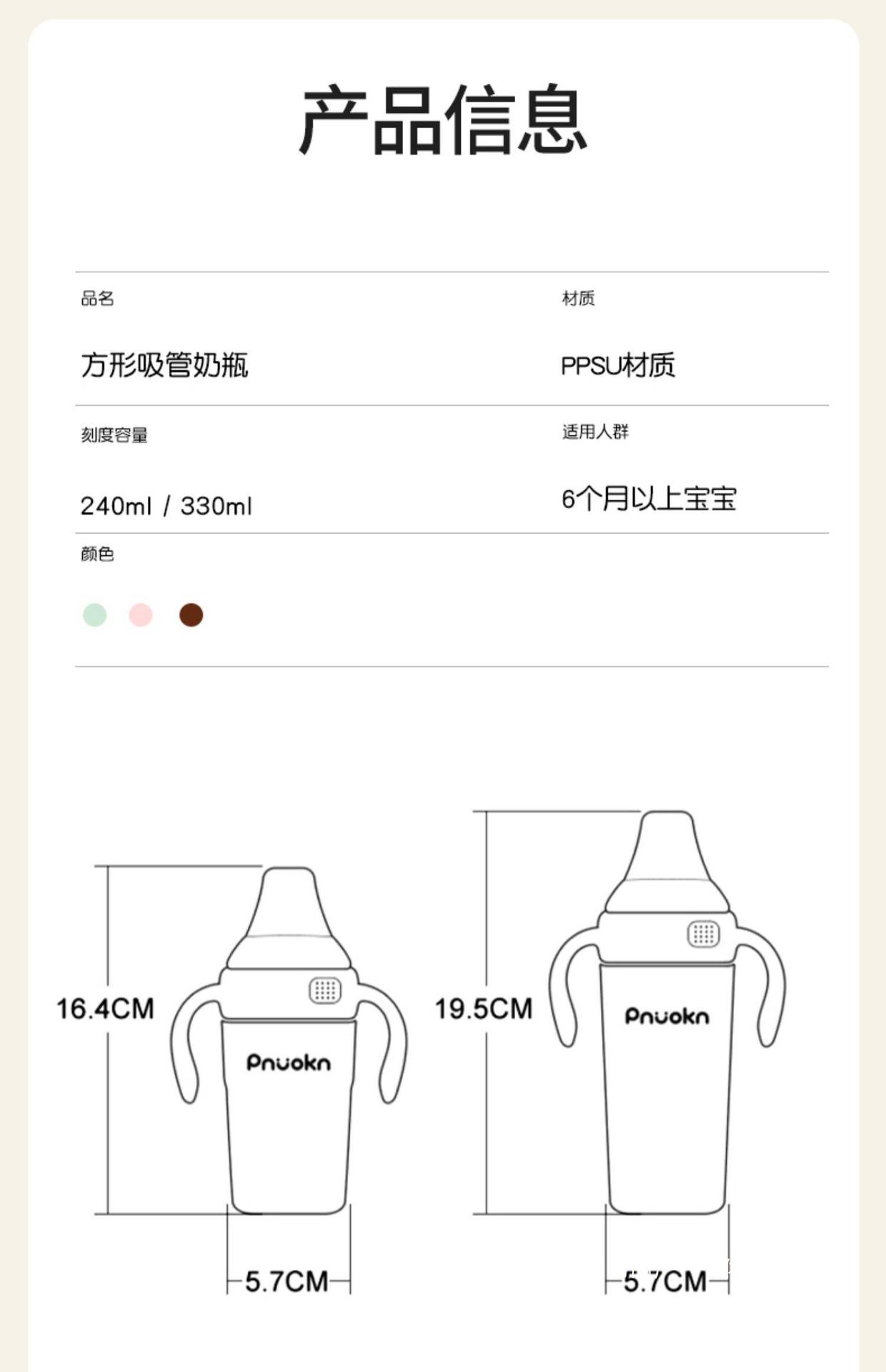【直管直饮奶瓶】棕色330ml 送:吸嘴2个+清洗刷