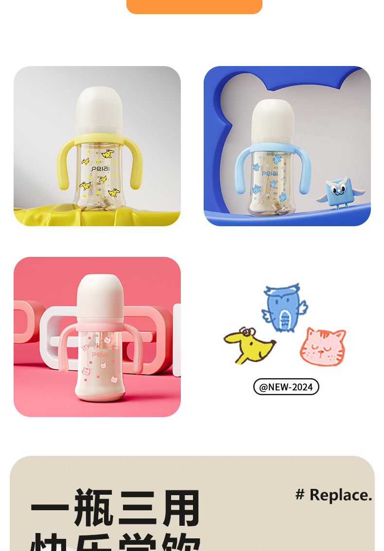 培爱PPSU婴儿奶瓶吸管杯鸭嘴杯宝宝水杯防摔奶嘴式防胀气耐高温