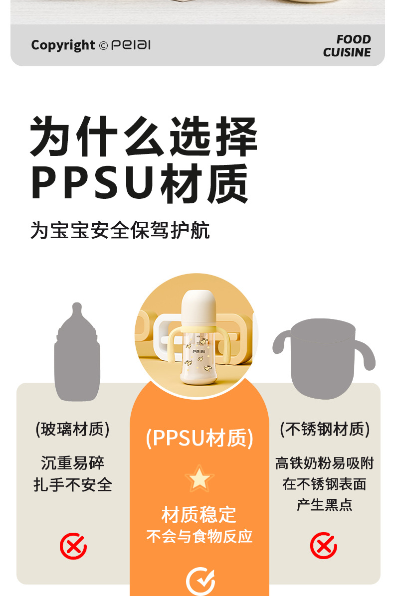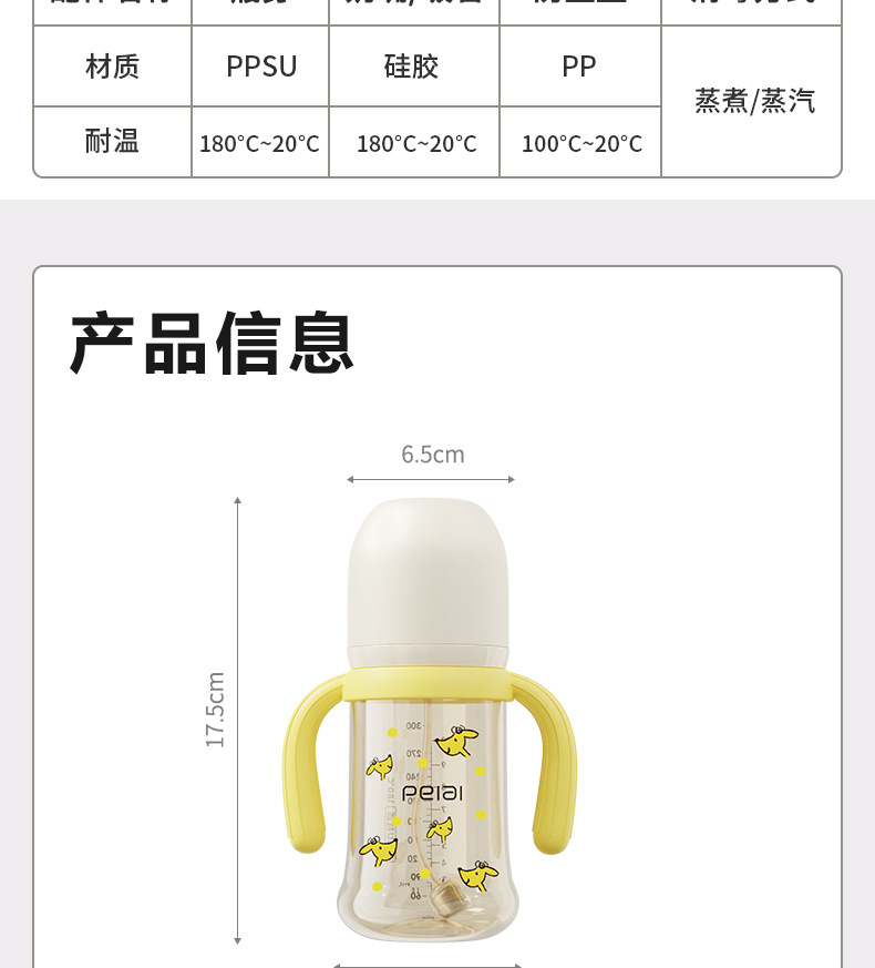 商品名称:培爱PPSU婴儿奶瓶吸管杯鸭嘴杯宝宝水杯防摔奶嘴式防胀气耐高温