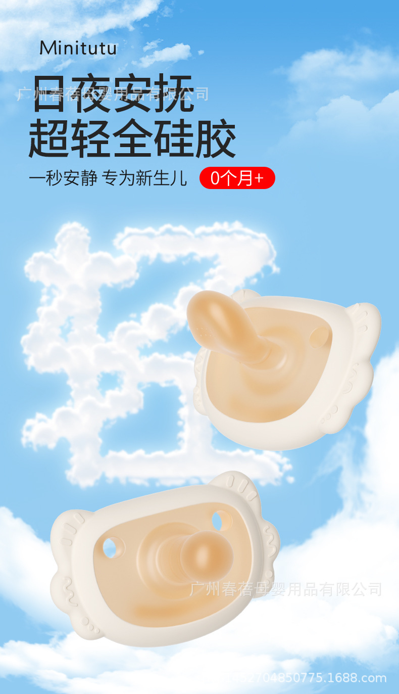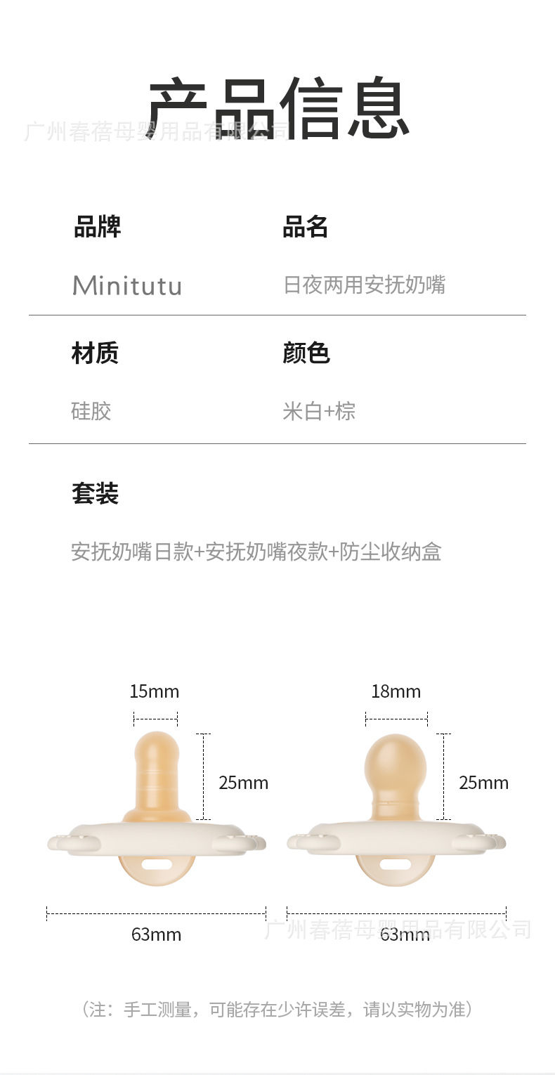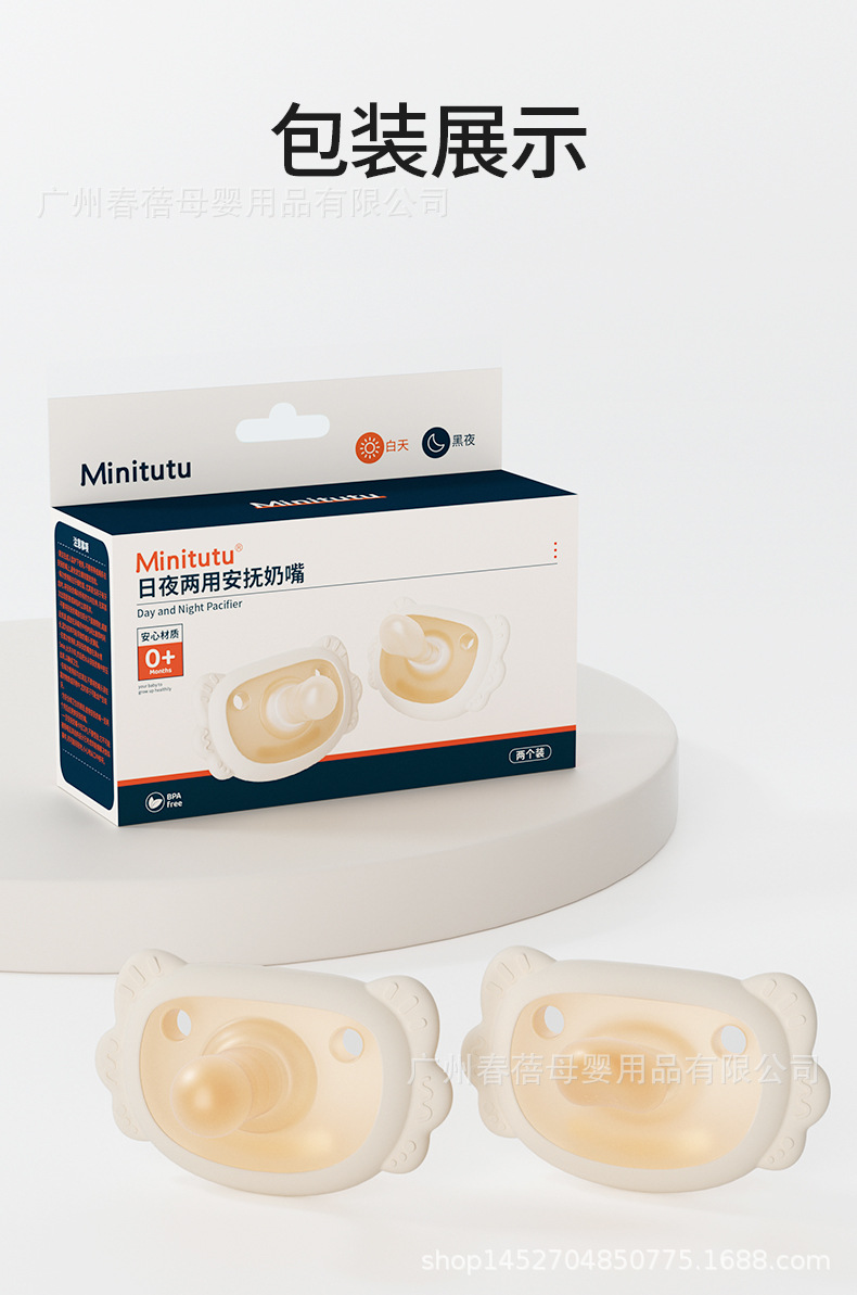 商品名称:Minitutu全硅胶新生儿安抚奶嘴日夜两用质轻防掉圆头扁头安抚宝宝