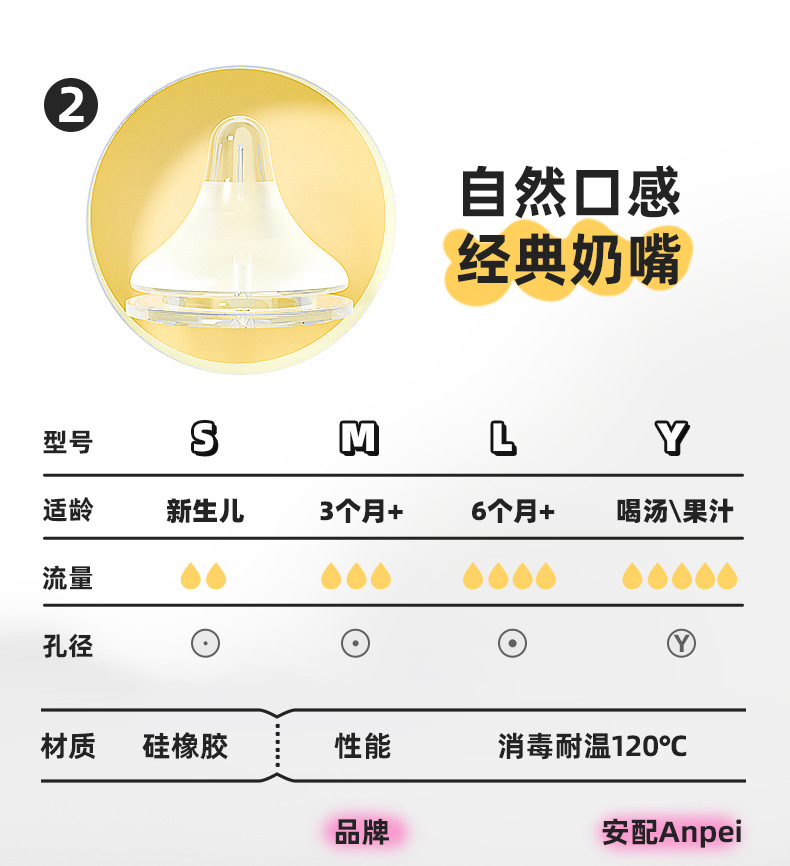商品名称:安配适配贝亲第2代第3代奶嘴硅胶自然口感宝宝宽口径奶瓶配件通用