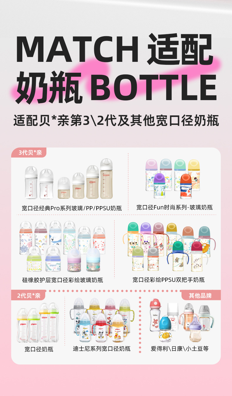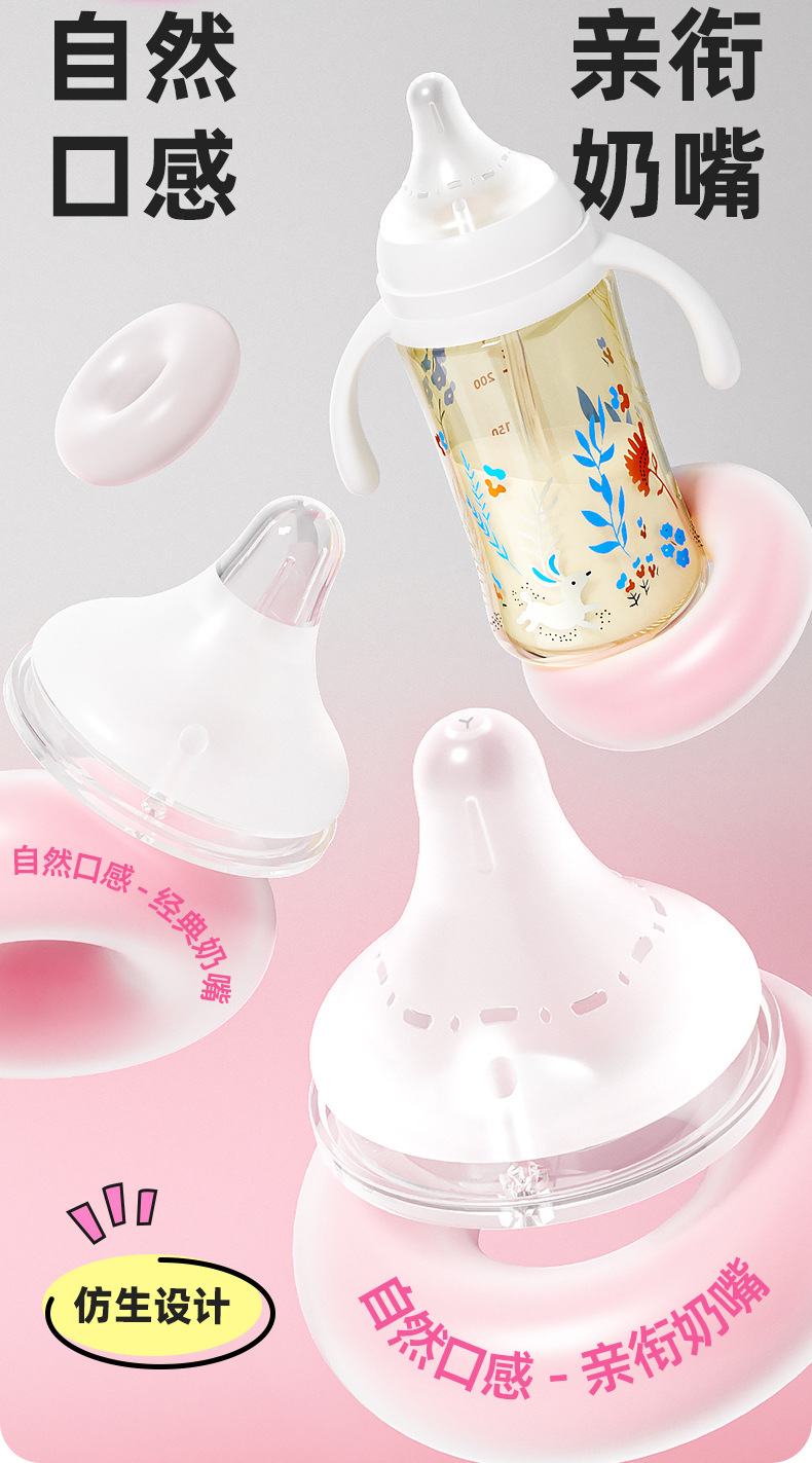 安配适配贝亲第2代第3代奶嘴硅胶自然口感宝宝宽口径奶瓶配件通用