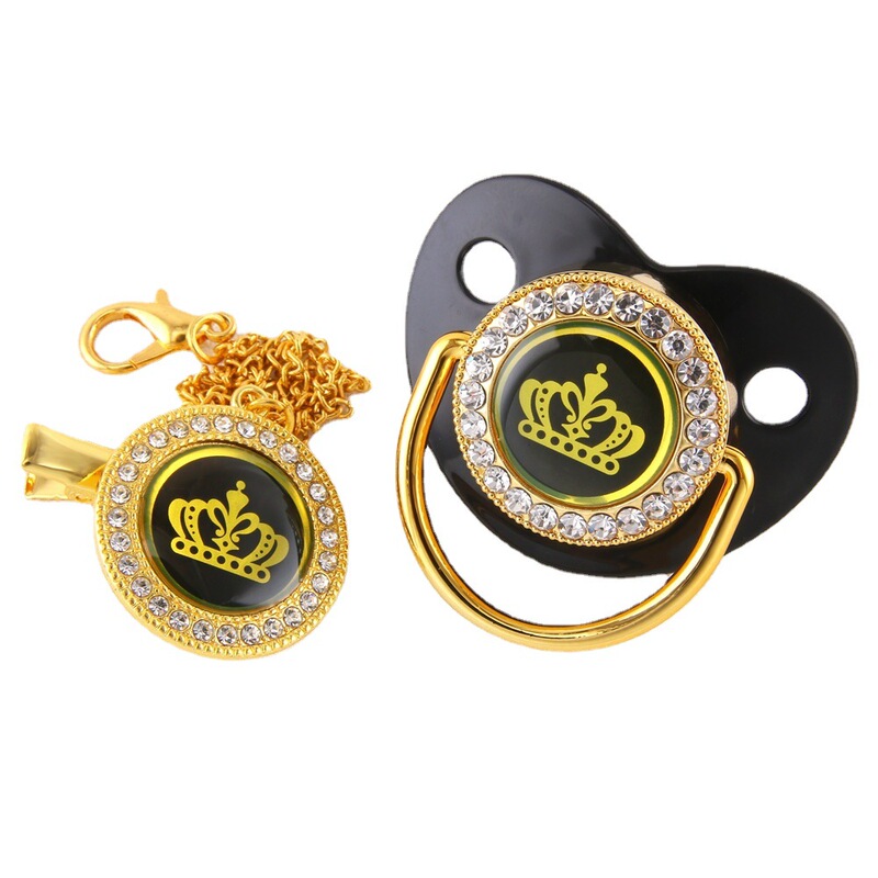 跨境热卖高档金色钻石安抚奶嘴卡通皇冠婴儿奶嘴含链条夹