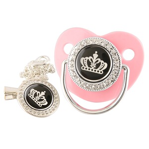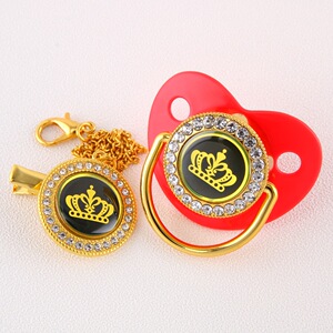 商品名称:热卖高档金色钻石安抚奶嘴卡通皇冠婴儿奶嘴含链条夹